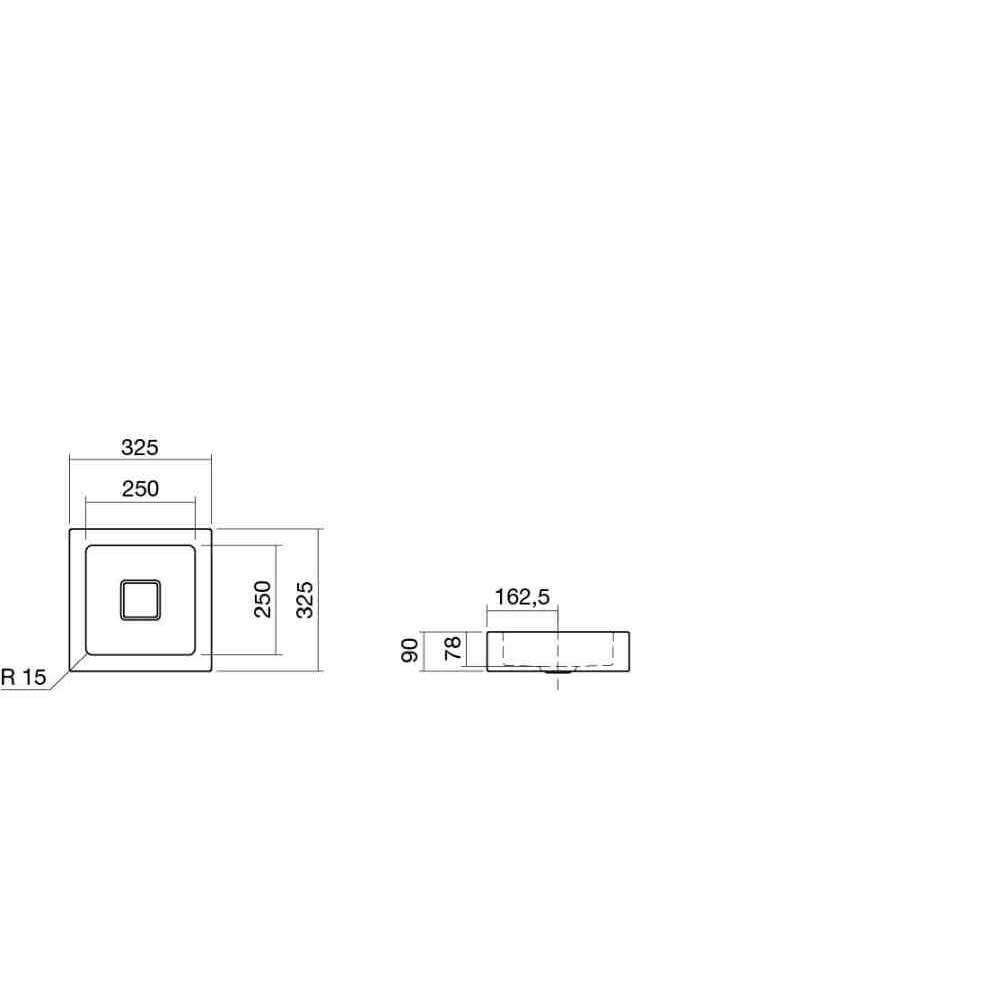 Szafka pod umywalkę, kwadratowa, 325 x 325 mm, forma umywalkowa kwadratowa i wyśrodkowana, przeszklona wewnątrz i na zewnątrz, wysokość 90 mm, bez otworu na baterię i przelewu, z zestawem mocującym i zaworem spustowym z białą przeszkloną pokrywą