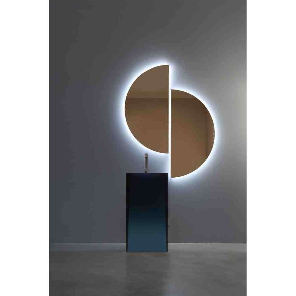 Wolnostojąca umywalka z silną osobowością i rzeźbiarską prezencją, które określają hierarchię otoczenia. Totem absolutny, który dodatkowo nabiera uroku dzięki możliwości podświetlenia materiału, ożywiając go światłem i refleksami rozchodzącymi się po przestrzeni.