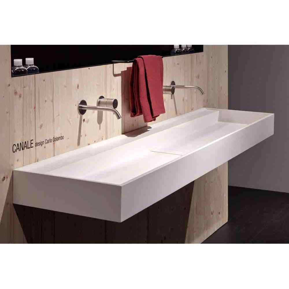Kształty są kwadratowe, ostre i sztywne, podłużny rozwój jest w DNA produktu, grubości są ograniczone dzięki ulepszonej technologii i zastosowaniu tego niezwykłego materiału, pojemność niecka jest bardzo duża. Umywalka Canale łączy w sobie estetykę i funkcjonalność dzięki właściwemu „kanałowi”, jakim jest, wygodnej powierzchni do przechowywania akcesoriów i wszystkiego, co niezbędne do codziennego użytkowania.