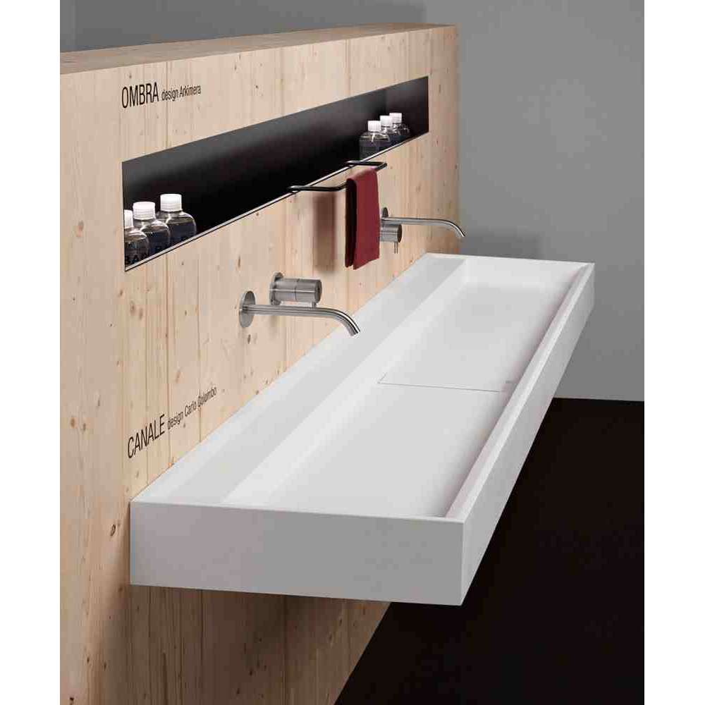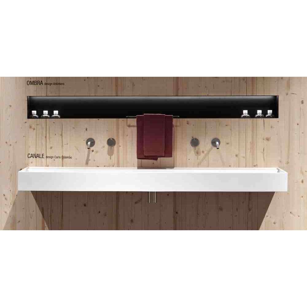Techniczny element, który staje się wyrazistym elementem, detal, który identyfikuje kolekcję tak bardzo, że wpływa na nazwę, projekt, który podsumowuje nieskończony potencjał firmy. Canale to podejście skrojone na miarę, symbol łazienkowych środowisk antoniolupi, to umywalka ścienna wykonana w całości we Flumood, która rozwija się w szerokości zgodnie ze specyficznymi potrzebami klienta w zakresie od 90 do 216 cm.