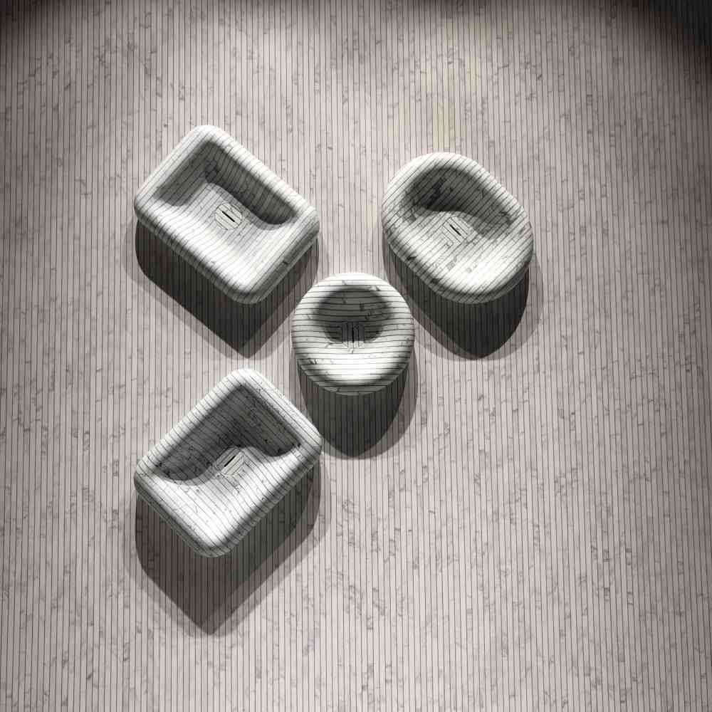 Kolekcja, która wywodzi się z kreatywności i myślenia człowieka i jest osiągnięta dzięki precyzji maszyny, miękkiej i falistej objętości z liniami obwiedni uzyskanymi przez połączenie 1 lub 2 cm arkuszy marmuru Carrara sklejonych ze sobą za pomocą kolorowa żywica.