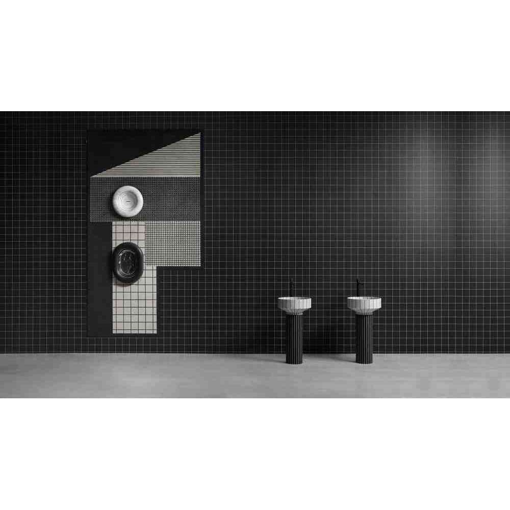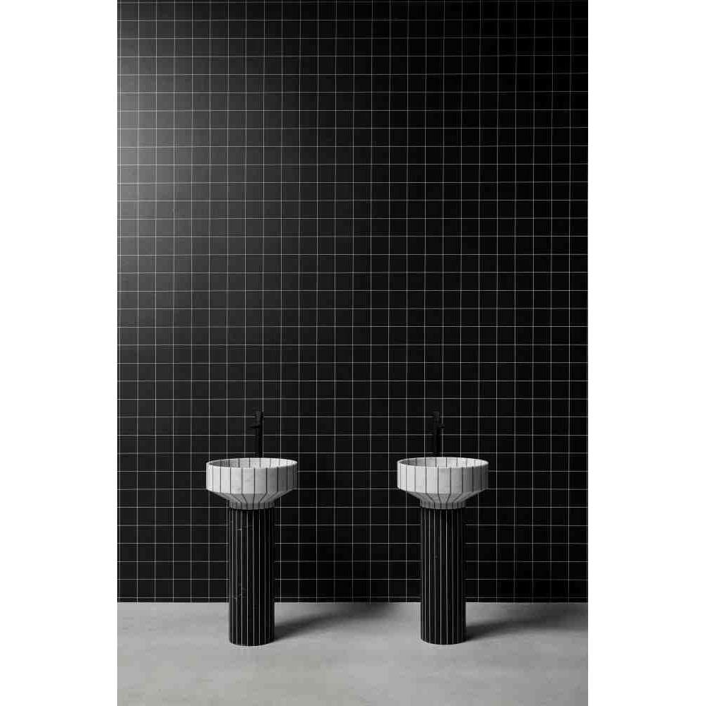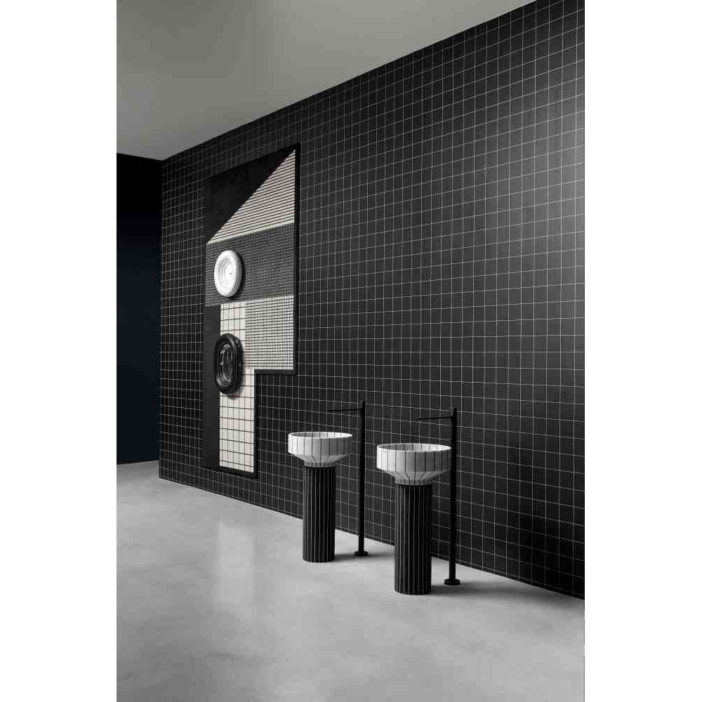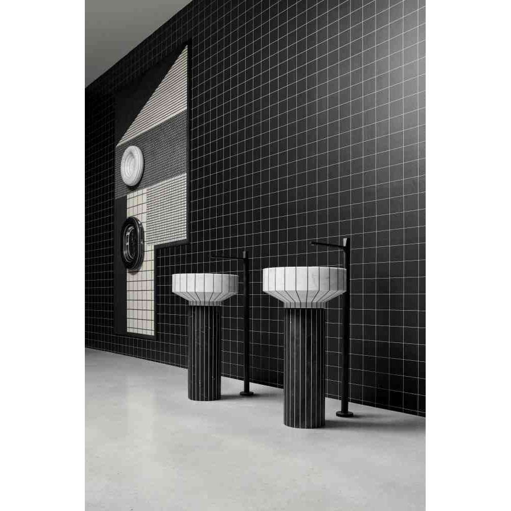 O24 to wolnostojąca umywalka marmurowa wykonana z 24 segmentów marmuru sklejonych żywicą w kontrastowym kolorze. 024 został zaprojektowany z uwzględnieniem aspektów związanych ze zrównoważonym rozwojem środowiska i wykorzystaniem materiałów pochodzących z recyklingu. Ten zlew, wraz z Gessati i Rigati, jest częścią kolekcji Tra_Le_Righe firmy Gumdesign dla antoniolupi.