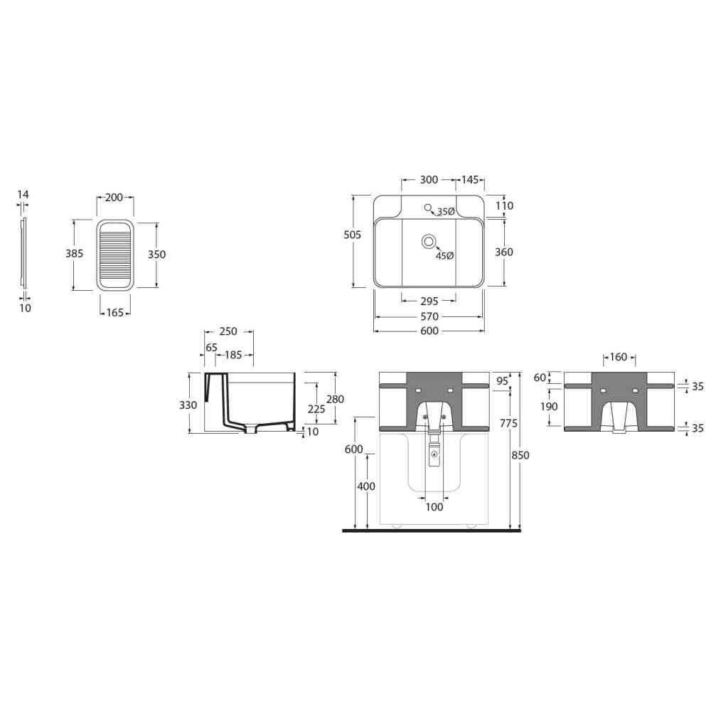 Prostokątna umywalka ceramiczna do montażu na ścianie