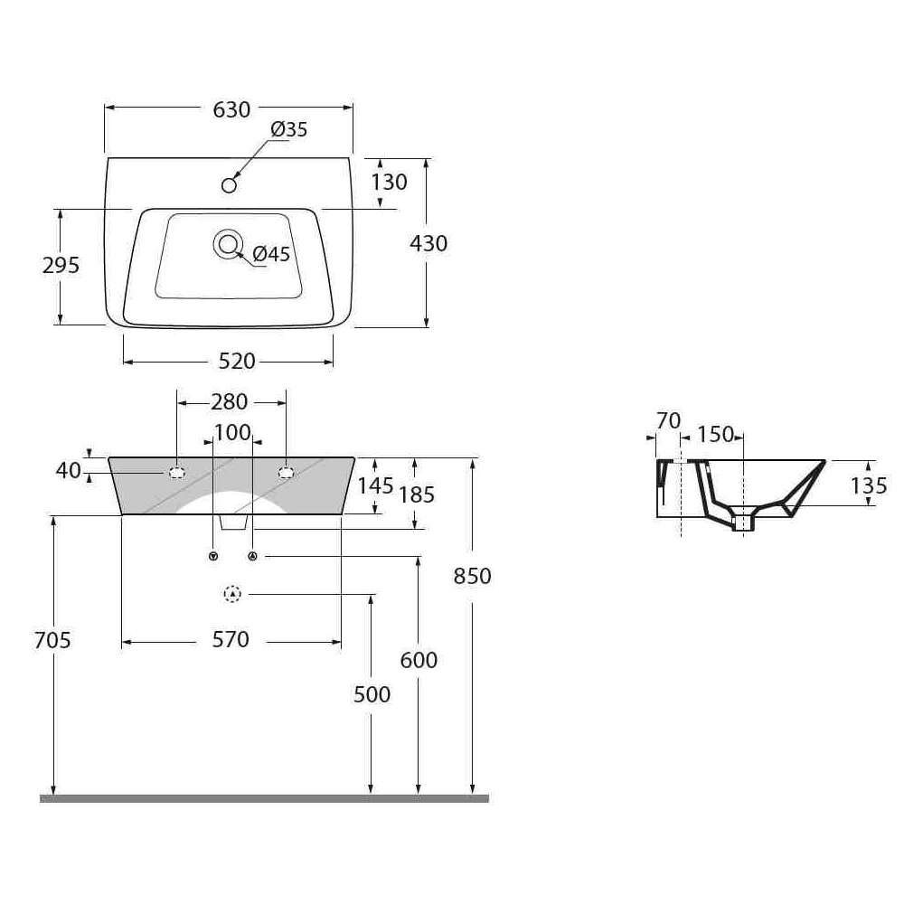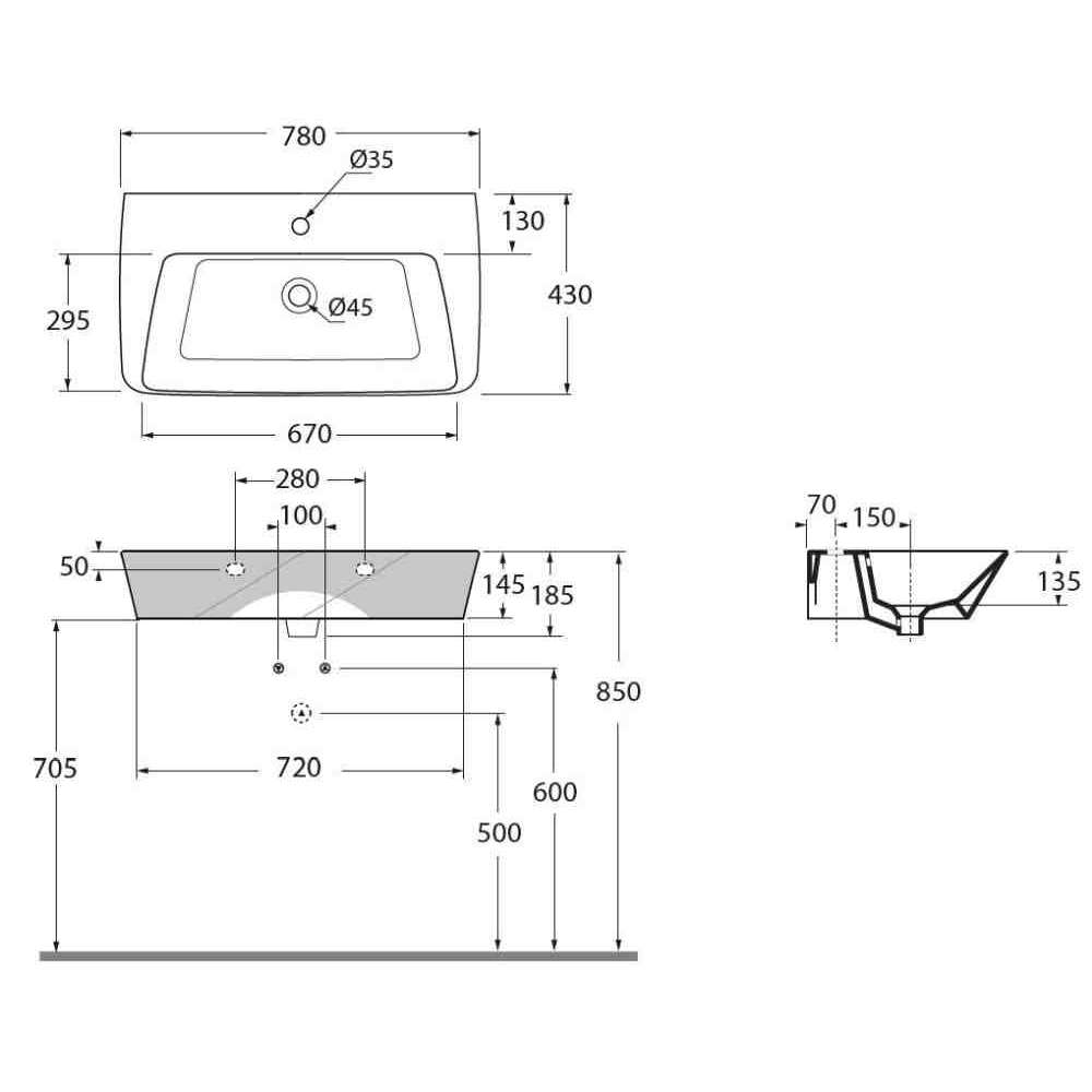 Prostokątna umywalka ceramiczna z przelewem Azzurra Ceramica Hera
