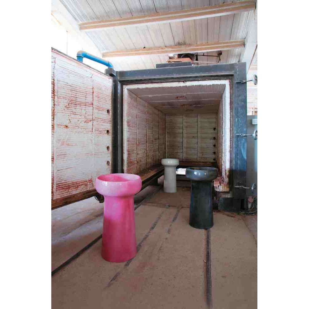 Umywalka stojąca w podłodze z terakoty zaprojektowana przez Angeletti Ruzza Design nie kryje swojego sugestywnego charakteru. To hołd złożony starożytnemu materiałowi, który przywołuje rytuały związane z tematem kielicha lub amfory, dostosowane do czasów poprzez grę nieszablonowych form i ponownie odwiedzanych linii.
