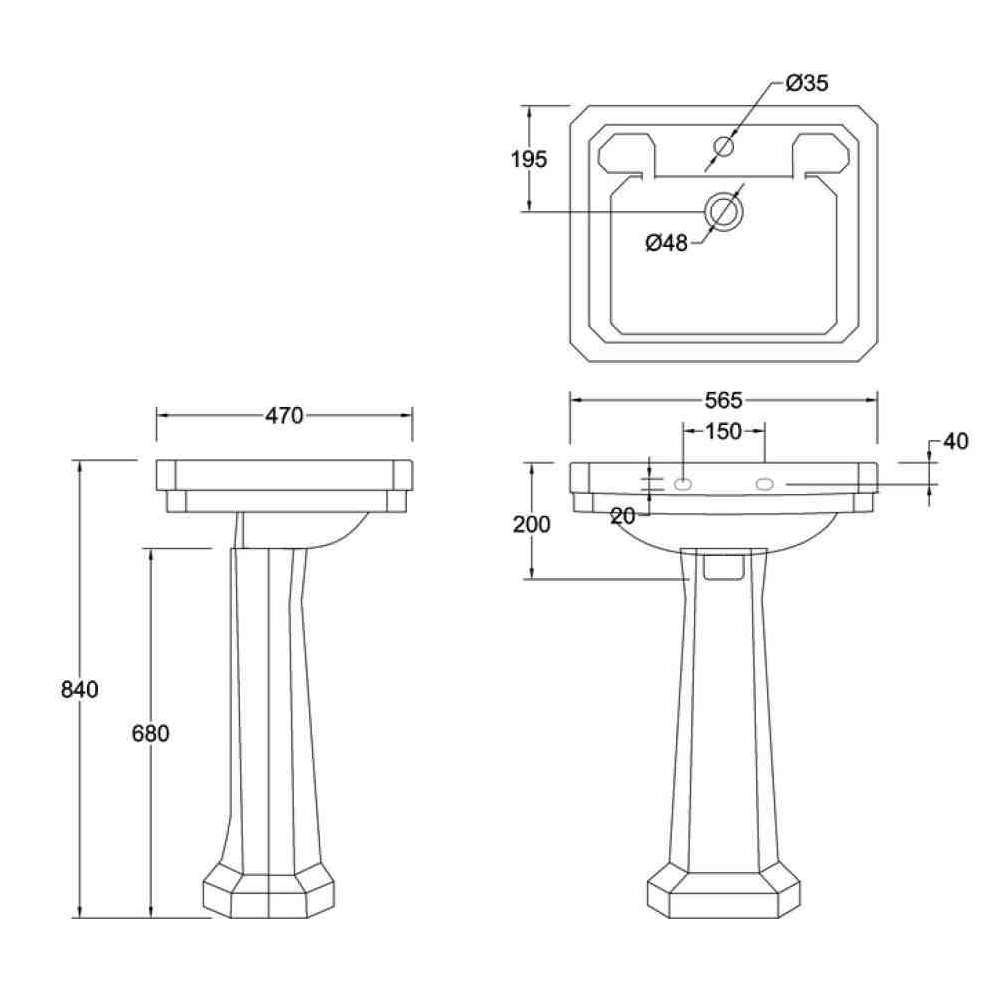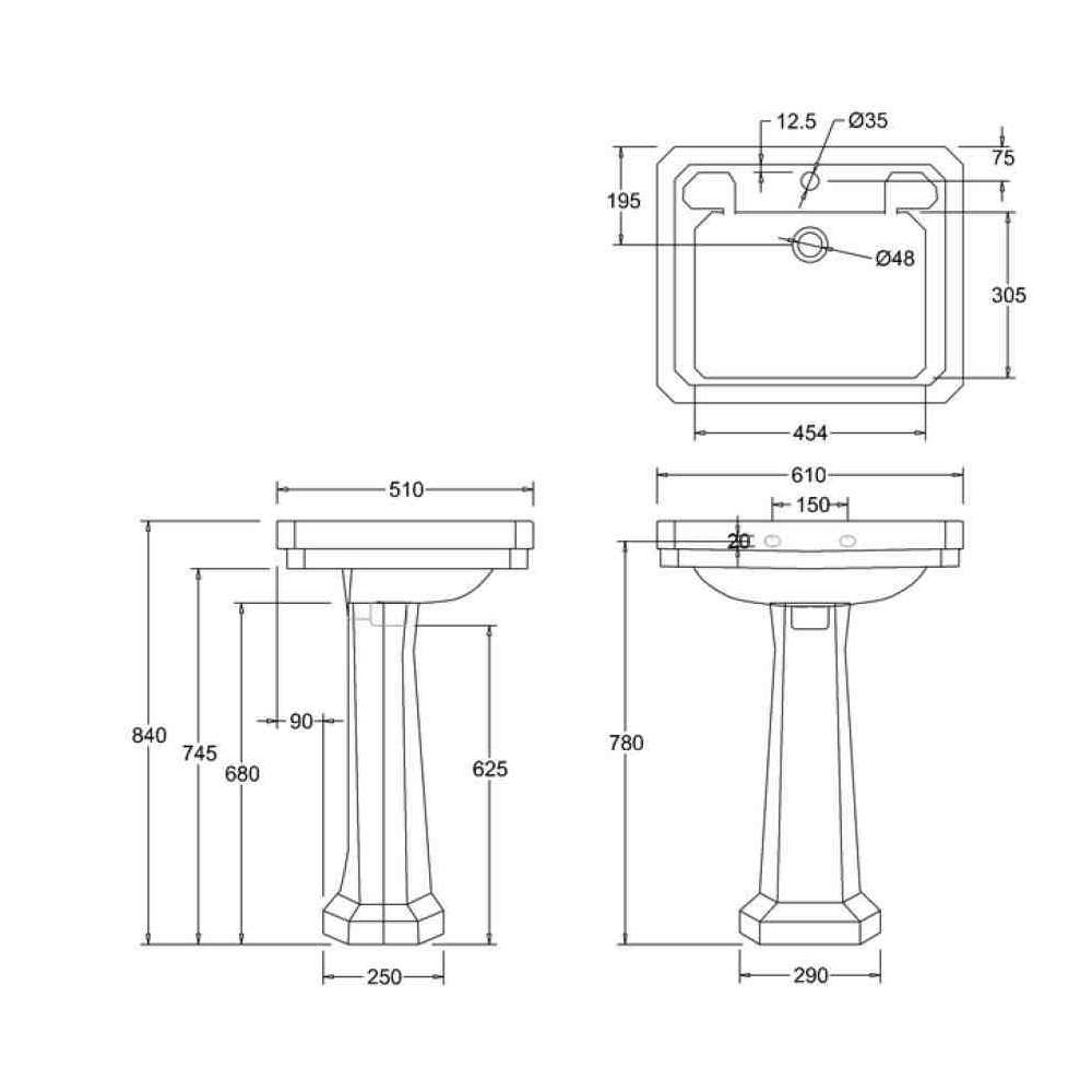 Prostokątna umywalka na postumencie z porcelany Vitreous China Burlington Bathrooms Victorian