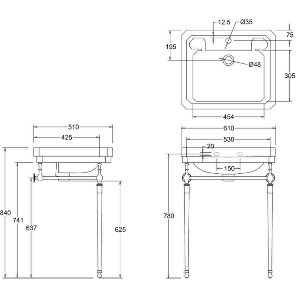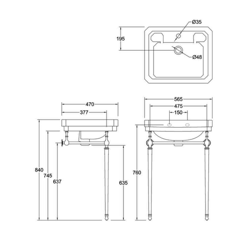 Konsolowa prostokątna umywalka z porcelany Vitreous China Burlington Bathrooms Victorian