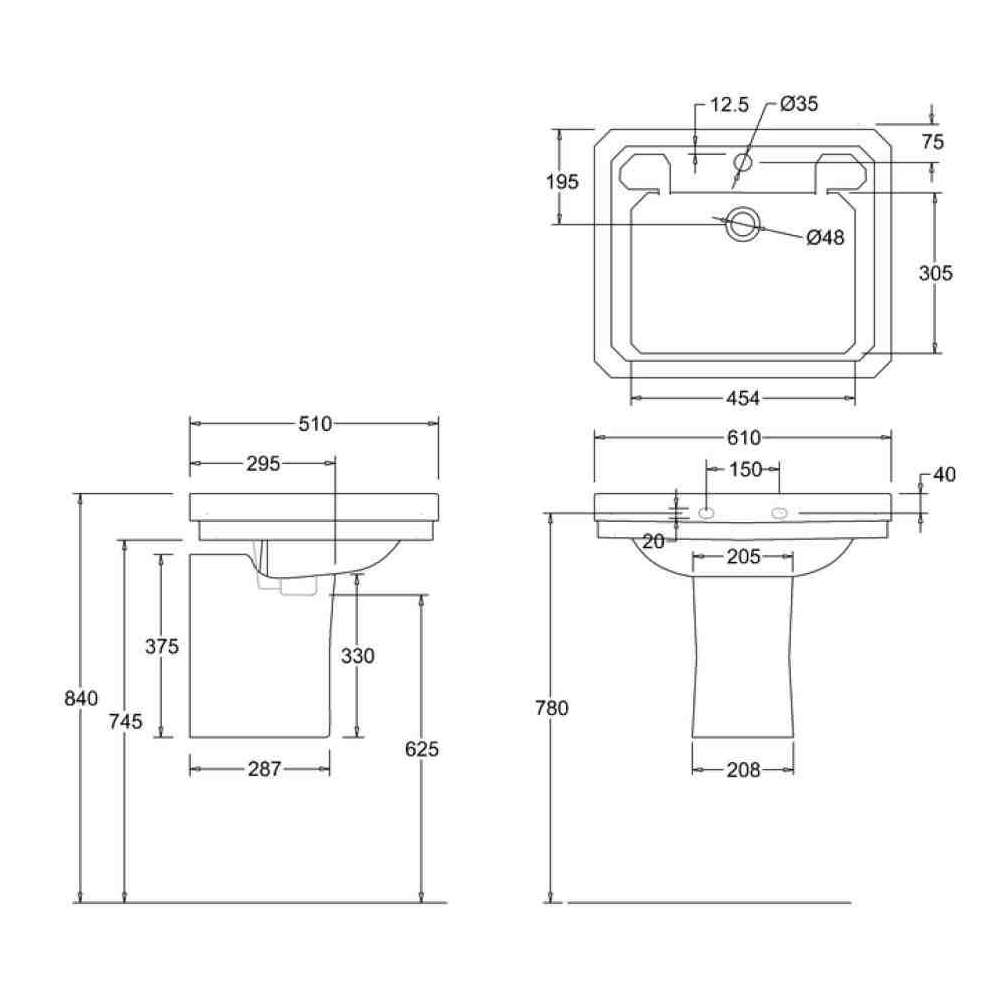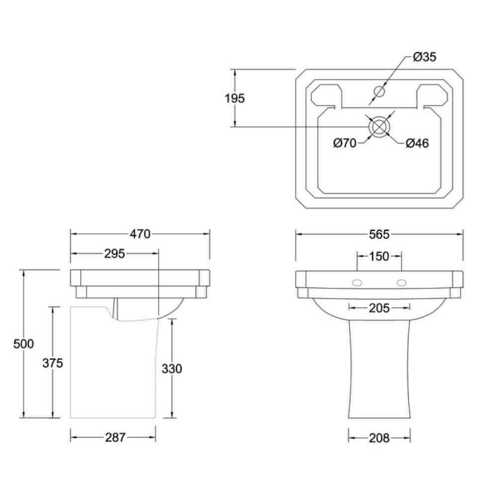 Prostokątna półpostumentowa umywalka z porcelany Vitreous China Burlington Bathrooms Victorian
