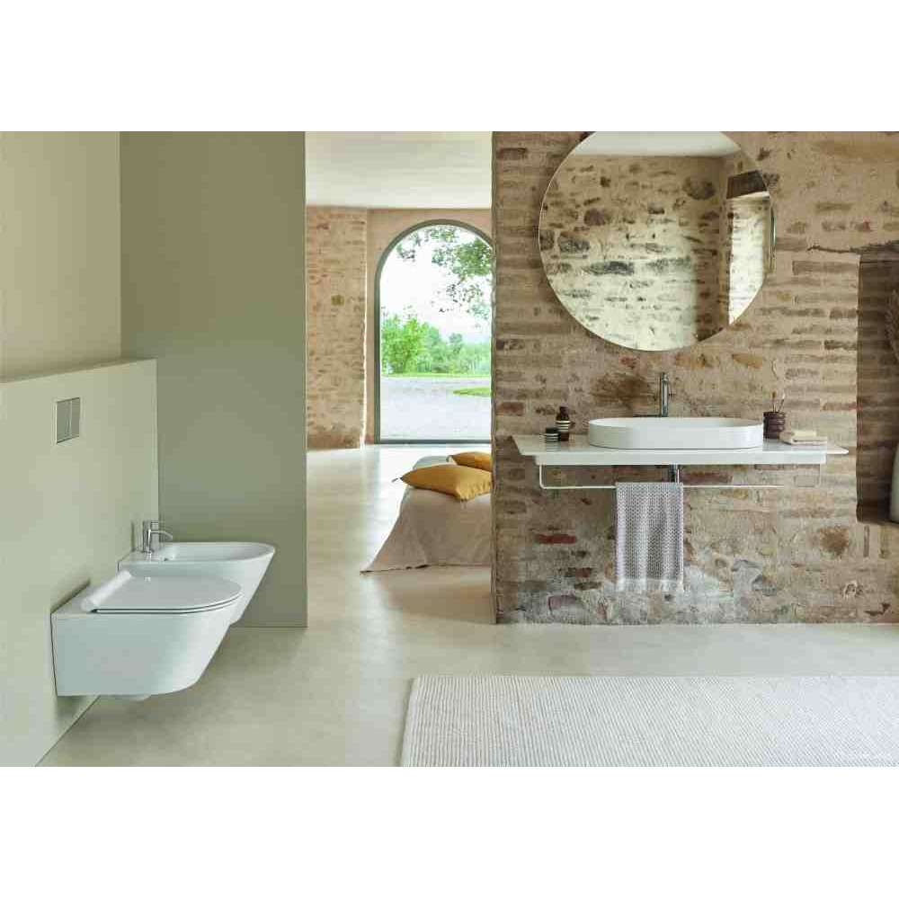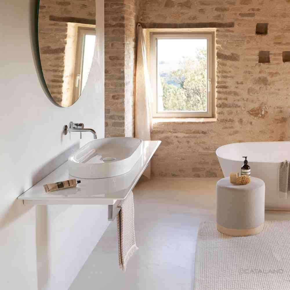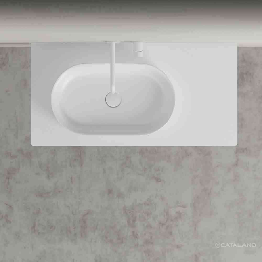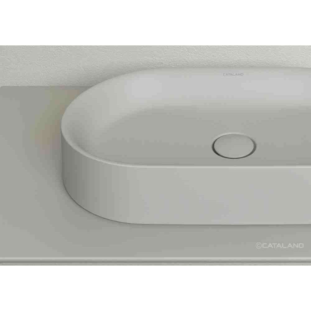 Catalano Horizon charakteryzujący się wyjątkowo płaskimi powierzchniami składa się z 3 nowych umywalek owalnych - 70x35, 60x35 i 50x35 cm - do montażu na ceramicznych blatach 125, 100 i Rozmiar 75 cm.