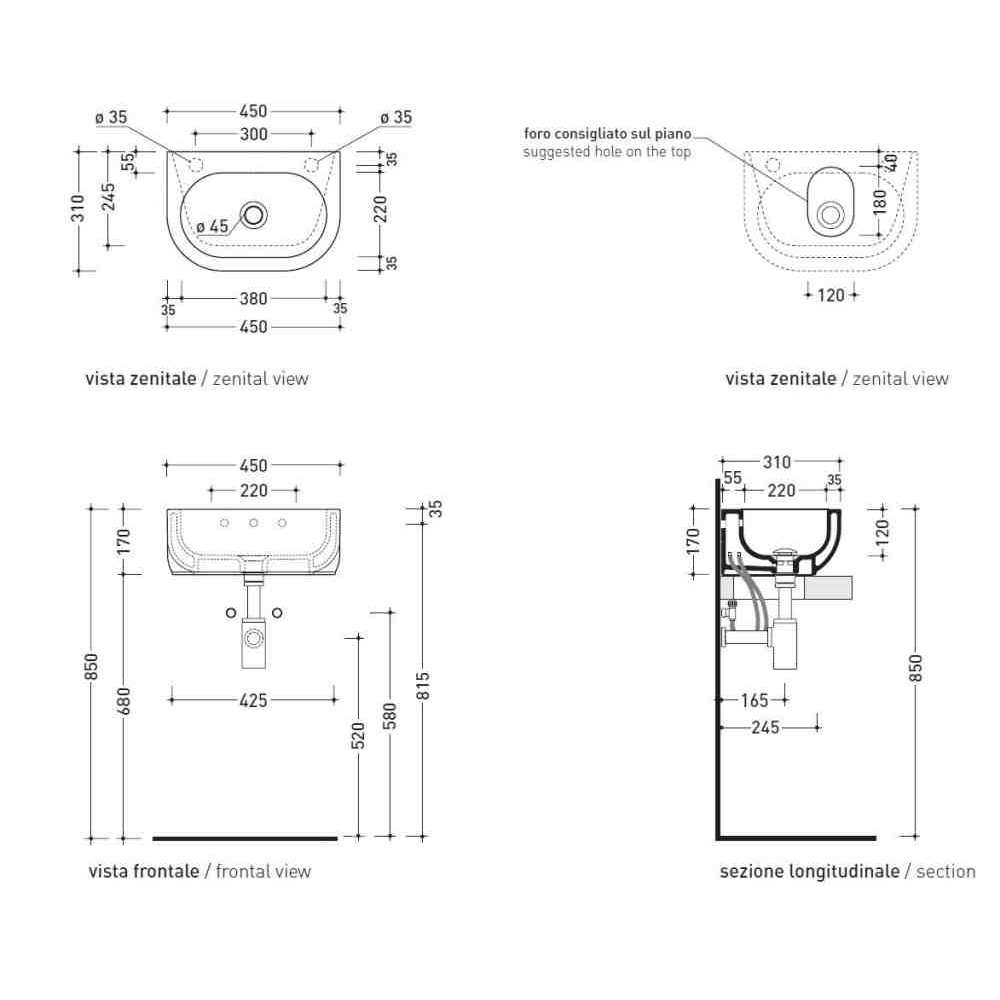 Naścienna umywalka ceramiczna z ręcznym spłukiwaniem Ceramica Flaminia Pass