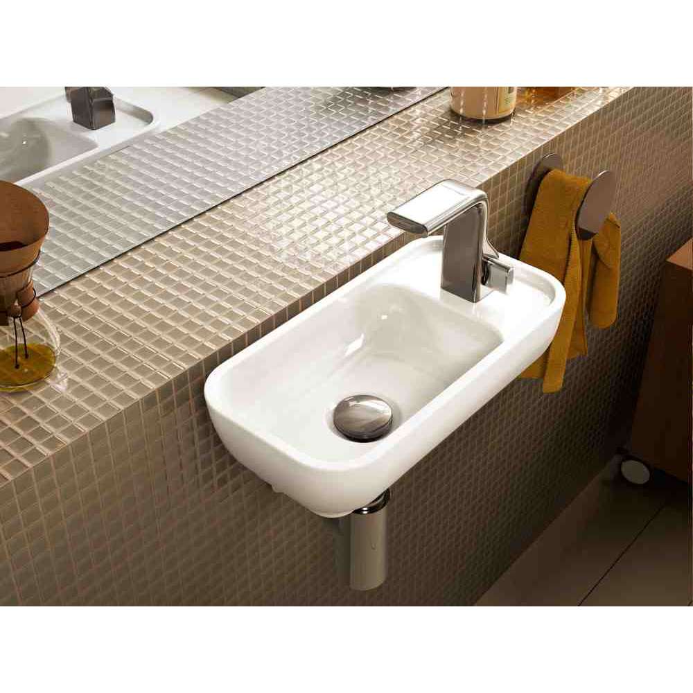 Zobacz większe Prostokątna, ścienna umywalka ceramiczna z ręcznym spłukiwaniem Ceramica Flaminia Pass