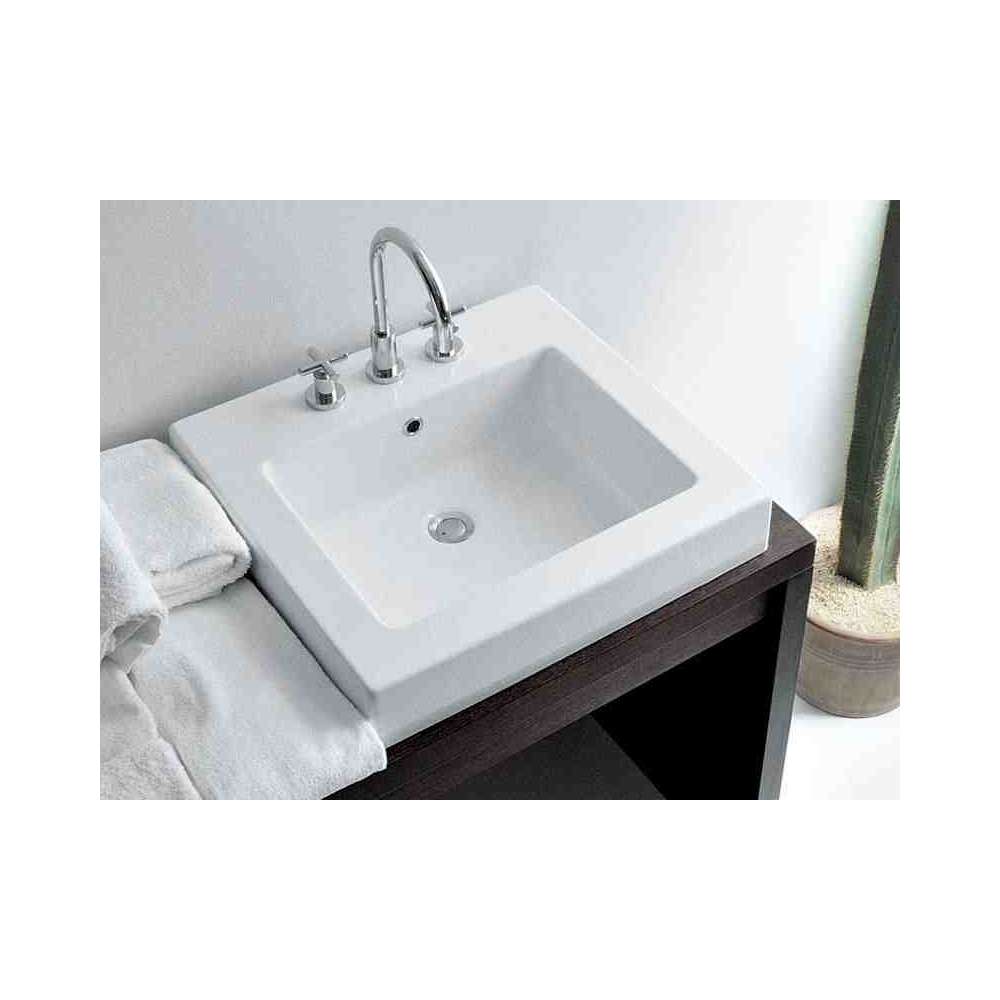 Umywalka ceramiczna kwadratowa wpuszczana w blat z przelewem Ceramica Flaminia ACQUAGRANDE 60