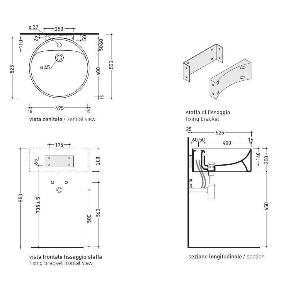 Umywalka ceramiczna do montażu na ścianie Ceramica Flaminia TWIN SET 52