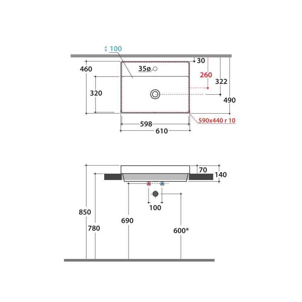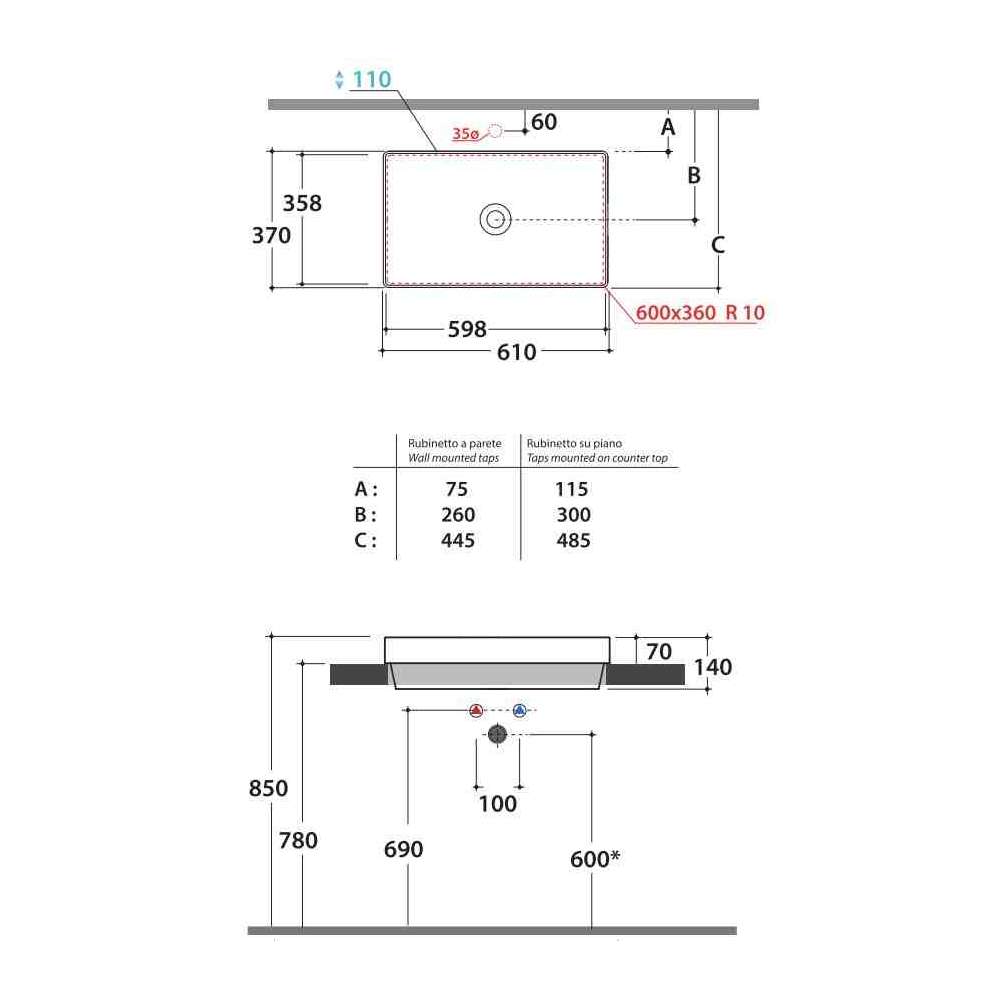 Umywalka wpuszczana w blat Globothin®. Ceramica Globo T-Edge