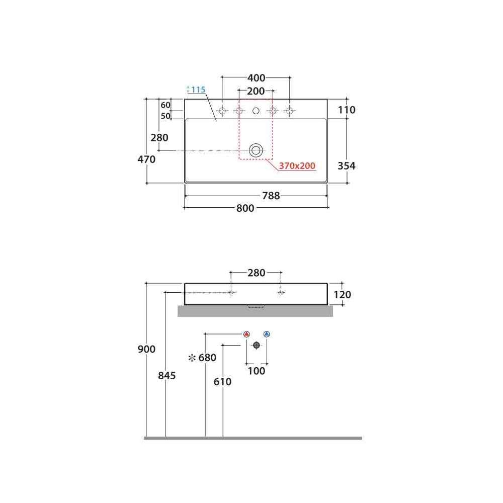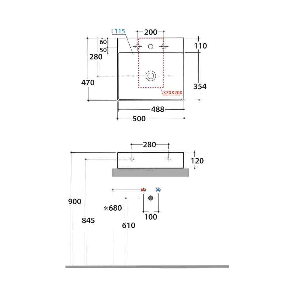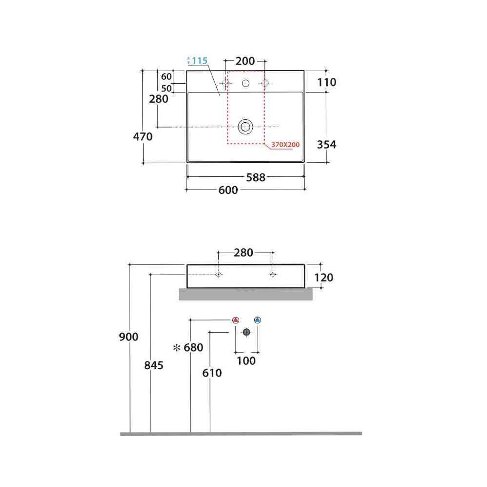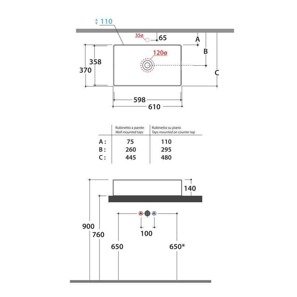 Prostokątna umywalka nablatowa Globothin®. Ceramica Globo T-Edge