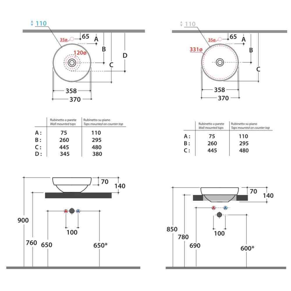 Umywalka Globothin® wpuszczana w blat Ceramica Globo T-Edge