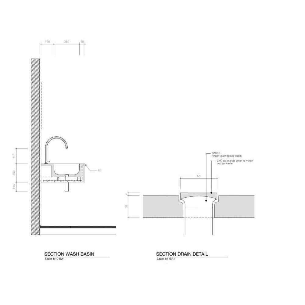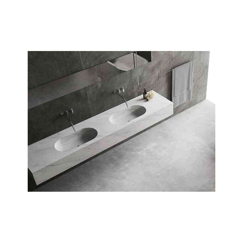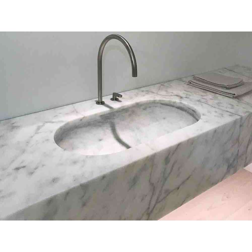 Wykonana na zamówienie umywalka z kamienia naturalnego zaprojektowana przez Johna Pawsona. Ta próżność może być wykonana na wymiar, aby pasowała do dowolnej szerokości. Wewnętrzna umywalka wykonana jest z litego bloku marmuru. W tym odpływ z tego samego materiału. Dostępny w szerokiej gamie marmurów naturalnych.