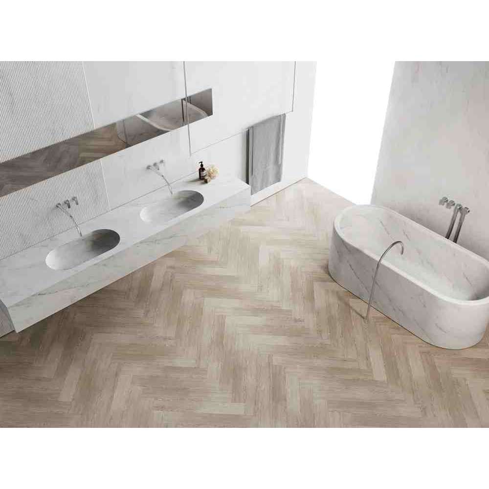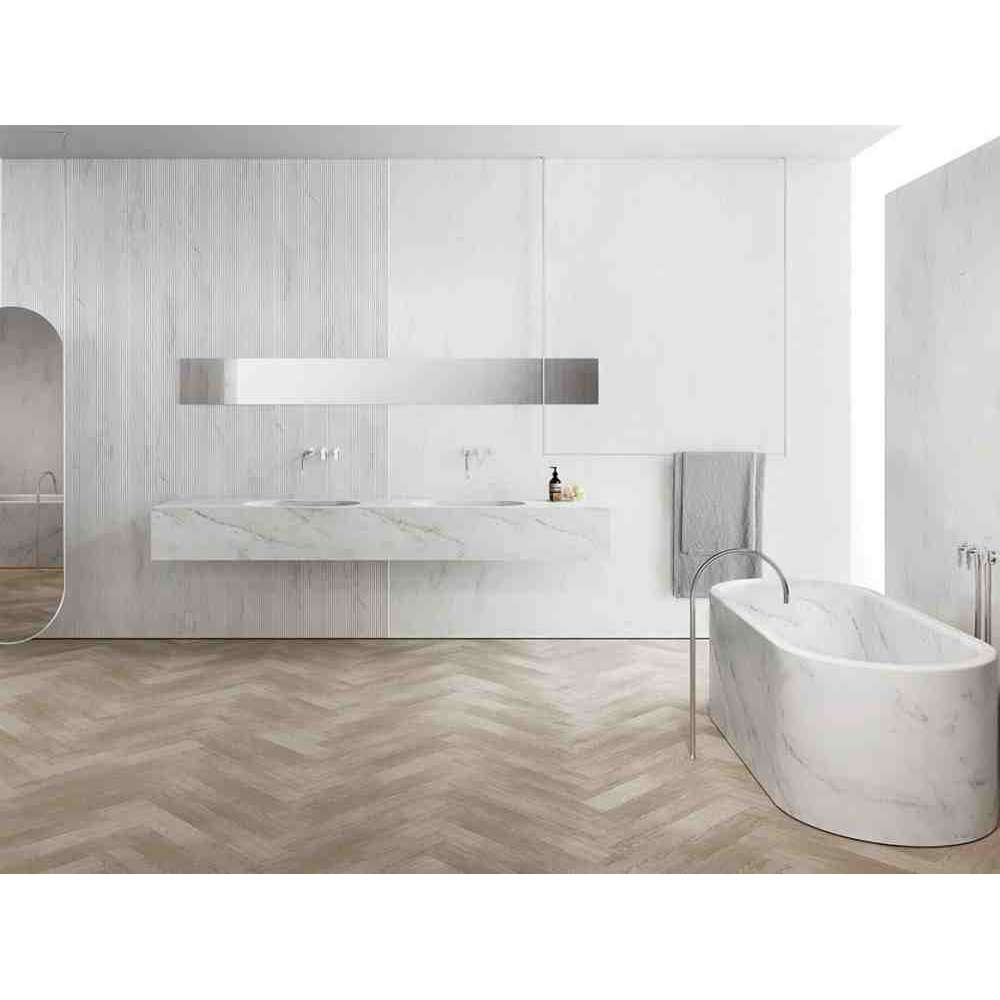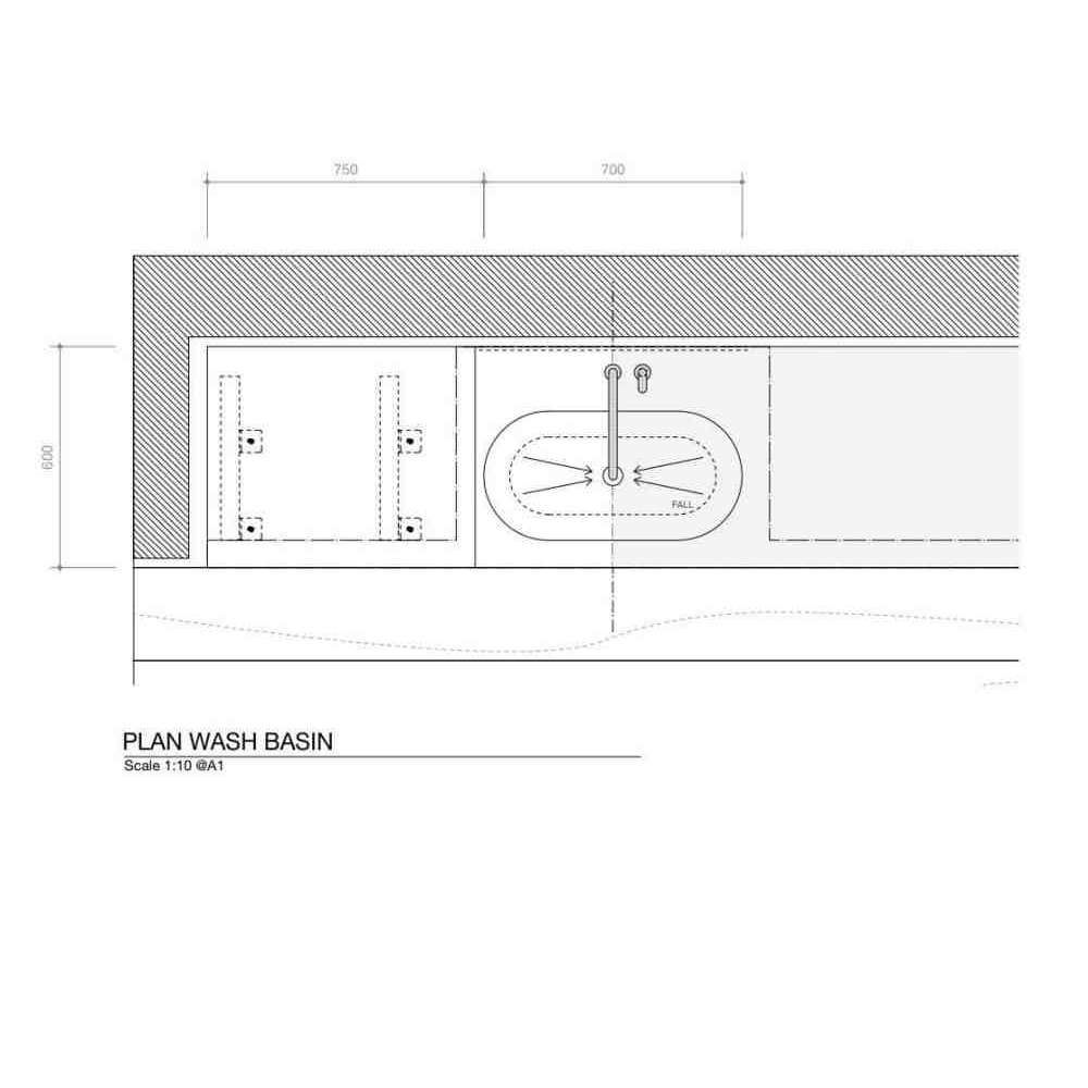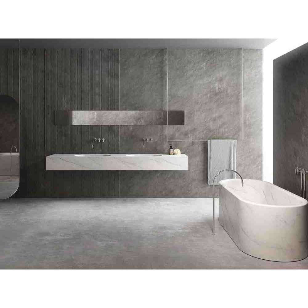 Wykonana na zamówienie umywalka z kamienia naturalnego zaprojektowana przez Johna Pawsona. Ta próżność może być wykonana na wymiar, aby pasowała do dowolnej szerokości. Wewnętrzna umywalka wykonana jest z litego bloku marmuru. W tym odpływ z tego samego materiału. Dostępny w szerokiej gamie marmurów naturalnych.