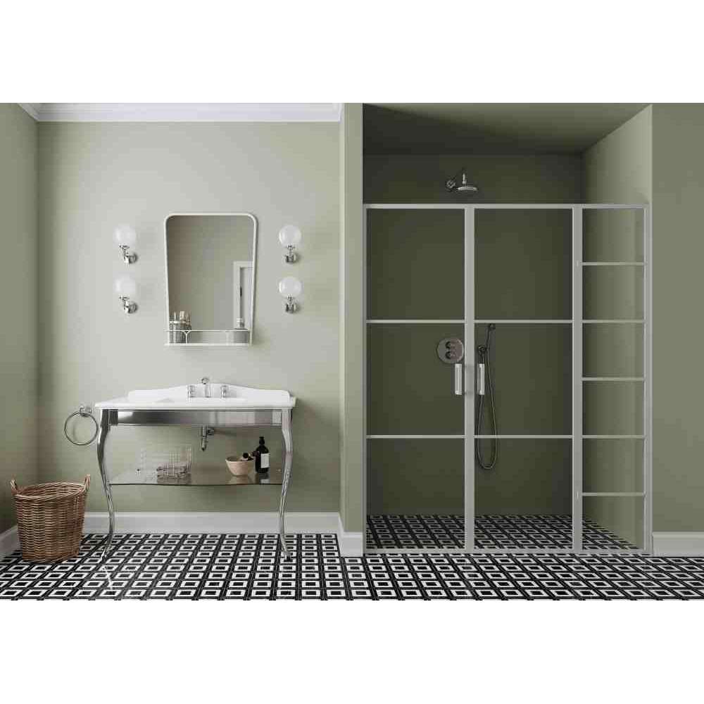 Jacqueline Ceramic to konsola inspirowana klasyką, która we współczesnym duchu reinterpretuje inspirację pochodzącą wprost ze szlachetnych XVIII-wiecznych domów. Blat i umywalka wykonane z ceramiki, półka wykonana z przezroczystego lub dymionego szkła. Jego cienkie i kręte nogi są wykonane ze stopionego aluminium z chromowanymi, jasnymi złotymi lub polerowanymi niklowymi wykończeniami.