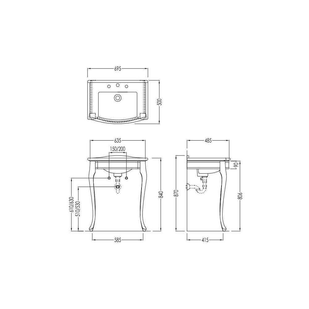 Ta konsola reinterpretuje osiemnastowieczną inspirację, koncentrując się na potrzebie współczesnego życia. Dzięki niewielkim rozmiarom można go umieścić również w małych pomieszczeniach, nadając im wielkiego uroku. Konstrukcja nośna ze stopionego aluminium jest dostępna w wykończeniu w kolorze jasnego złota, chromu lub polerowanego niklu. Całość dopełnia umywalka z porcelany Westminster.