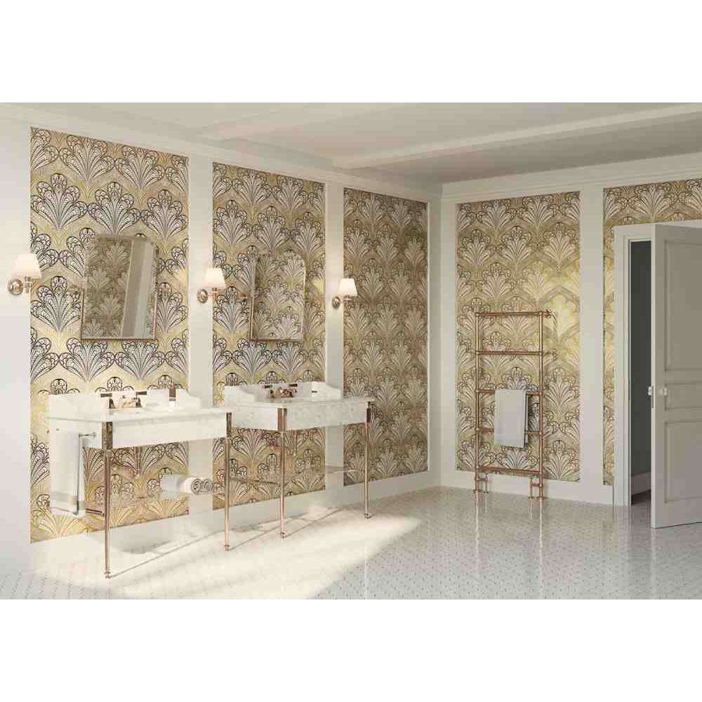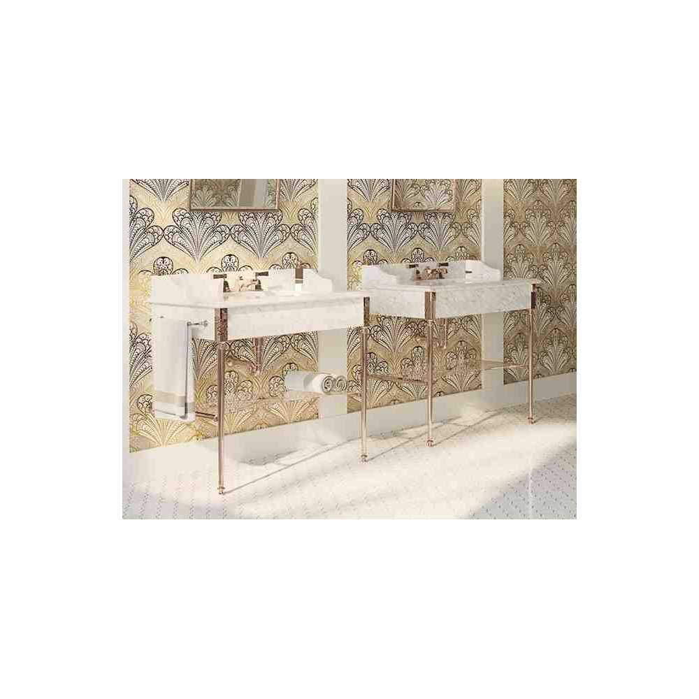 Ta konsola, inspirowana angielskim designem z końca XIX wieku, jest małym arcydziełem formalnej harmonii. Wysokiej jakości materiały: szlachetna biel Carrara, Calacatta Borghini lub czarny marmur Marquinha na górze i podniesionym oparciem, toczony mosiądz na nogi i reling wieżowy, dostępne w wykończeniu chromowanym, jasnozłotym lub polerowanym niklu.