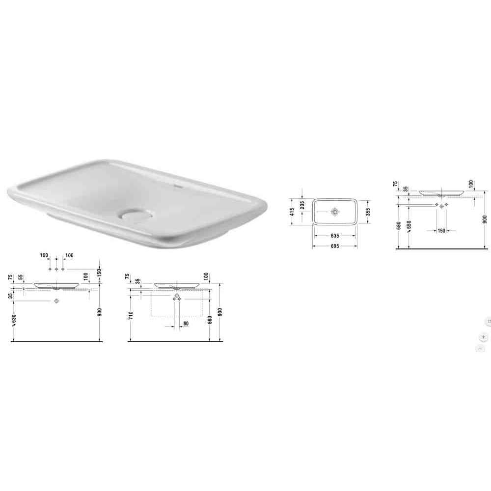 Umywalka ceramiczna prostokątna nablatowa Duravit PuraVida