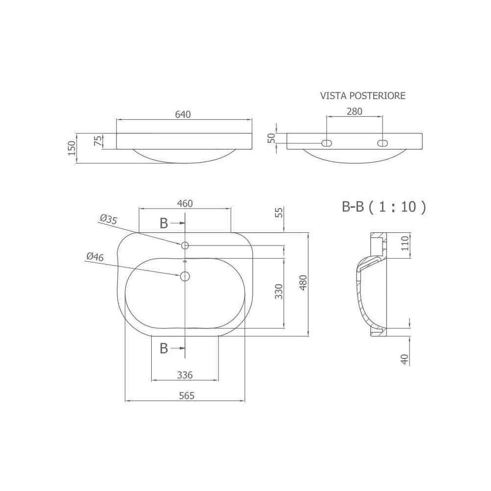 Ergonomiczna umywalka ceramiczna z szeroką umywalką i dużą krawędzią ułatwiającą oparcie łokci. Montaż ścienny za pomocą dwóch otworów o rozstawie osi 280 mm. Wysokie i zaokrąglone krawędzie zwiększające bezpieczeństwo użytkowania dla osób starszych lub niepełnosprawnych oraz dzieci. Umywalka może być montowana na ścianie lub wpuszczana. Wyposażona w otwór na baterię, przelew i otwór na standardowy odpływ 1”1/4 (brak w zestawie)