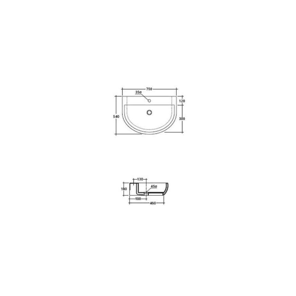 Pojedyncza umywalka ceramiczna do montażu na ścianie w stylu współczesnym Galassia EL2 75