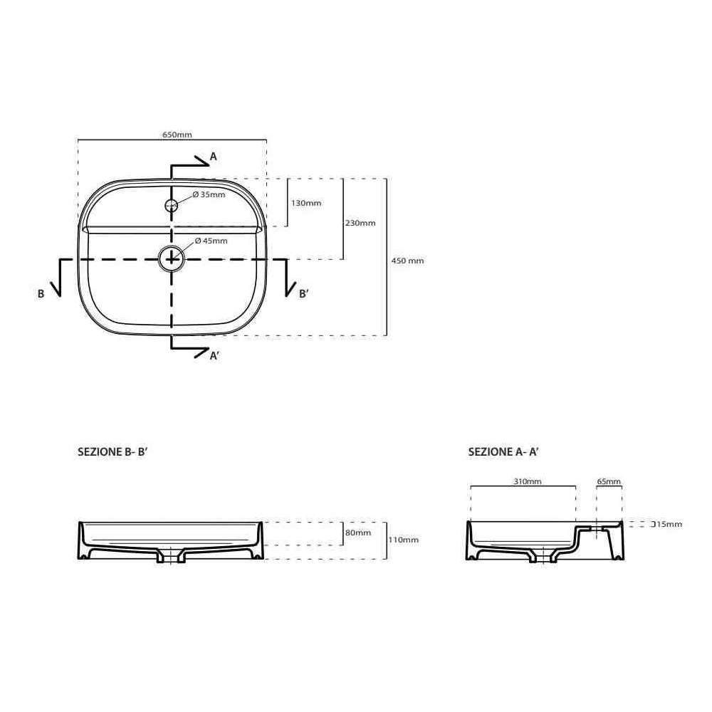 Umywalka ceramiczna prostokątna nablatowa Galassia Smart B 7401