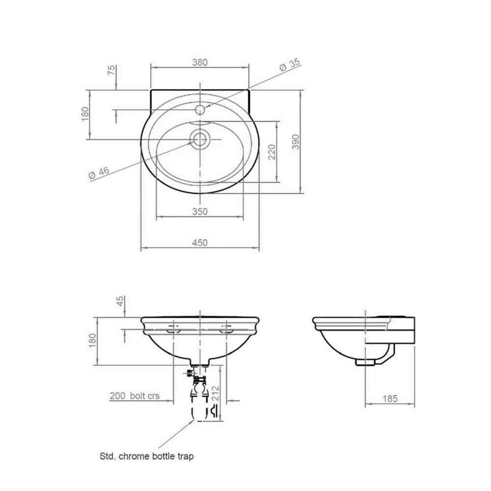 Owalna umywalka porcelanowa do montażu na ścianie Gentry Home Hillingdon