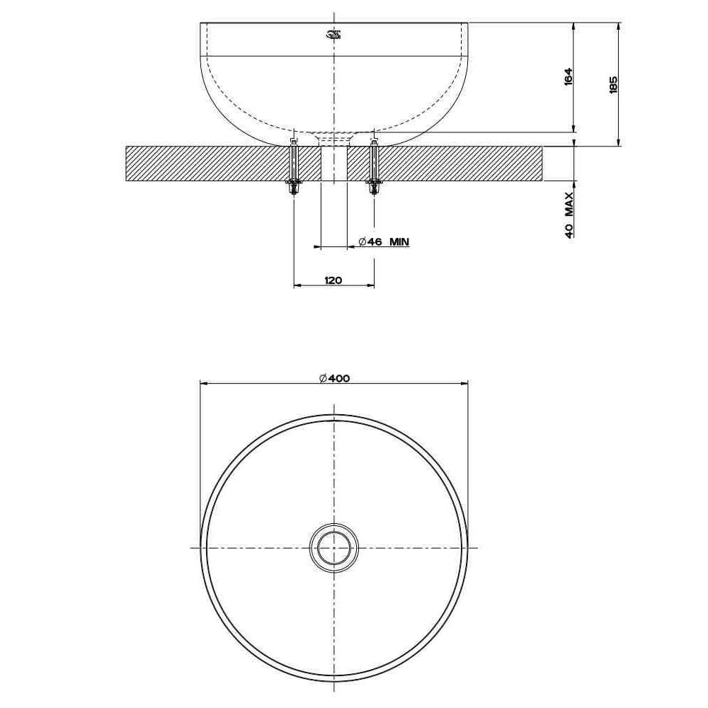 Ciotole to umywalka nablatowa z Ceramilux® (biały połysk) bez odpadów i przelewu.