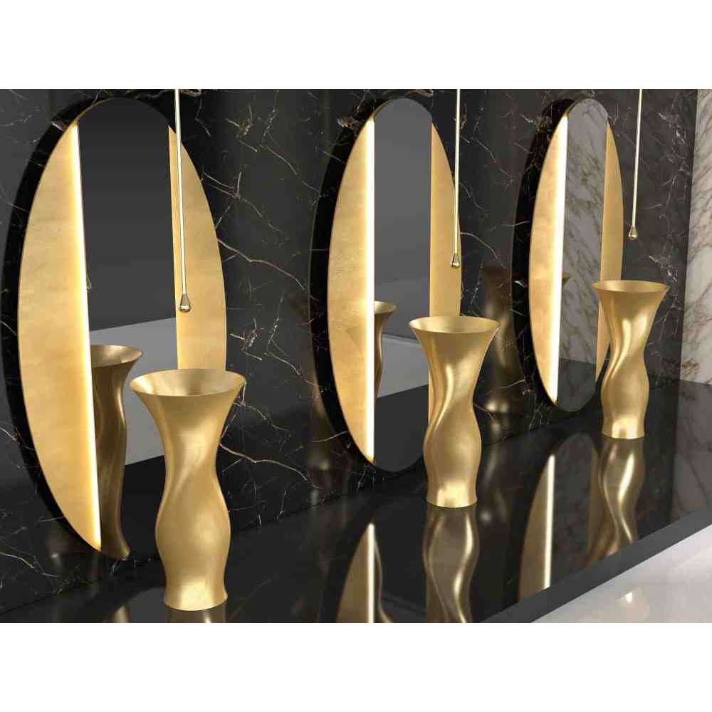 Jest to wyjątkowy i urzekający element, który staje się jeszcze bardziej przyciągający wzrok, gdy w połączeniu z dopasowanym lustrem tworzy zharmonizowany „całkowity wygląd”. Ta ostatnia ma boczne oświetlenie LED, które podkreśla wykończenie, tworząc kreację, która jest elegancka, kobieca i ponadczasowa.