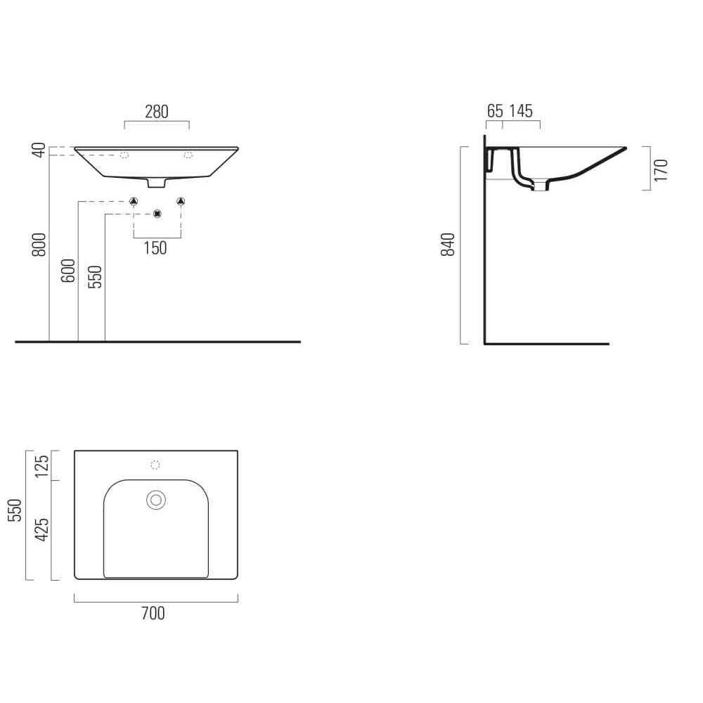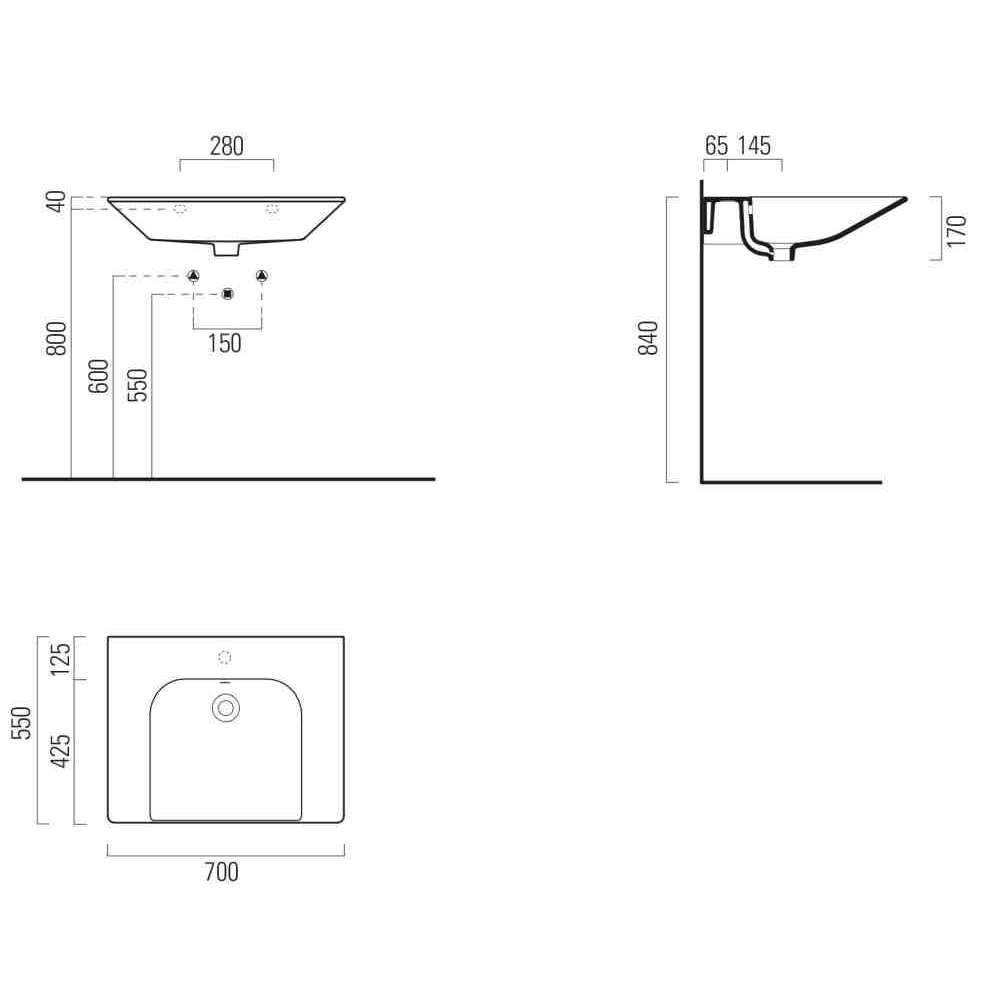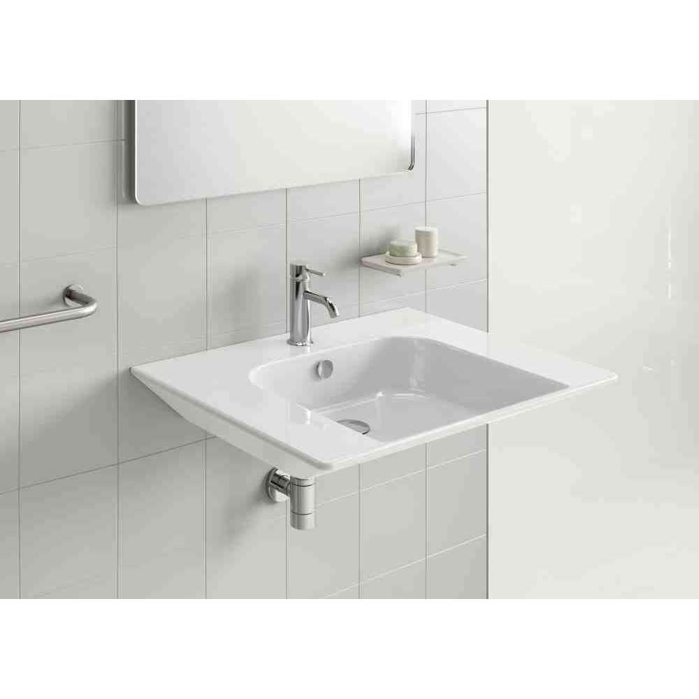 Prostokątna umywalka ścienna z przelewem GSI ceramica Community 70X60