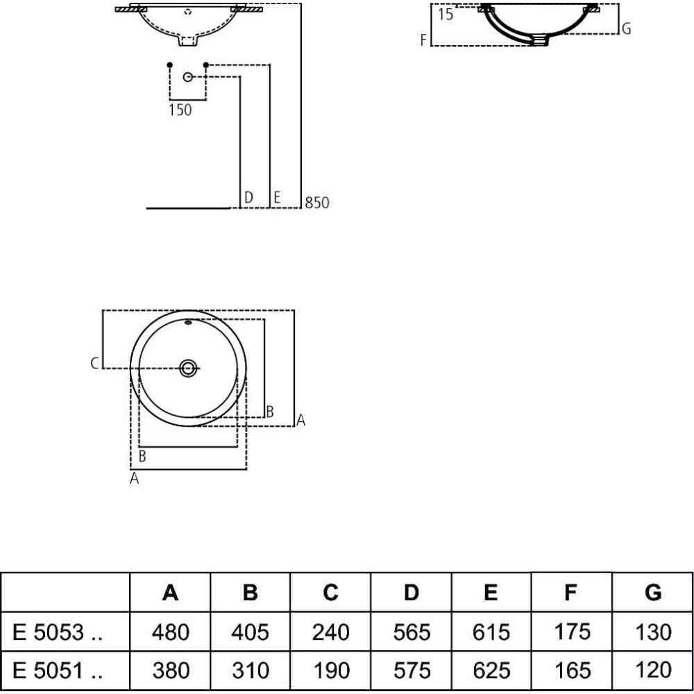 Umywalka okrągła wpuszczana w blat Ideal Standard Connect 48 x 48 cm - E5053