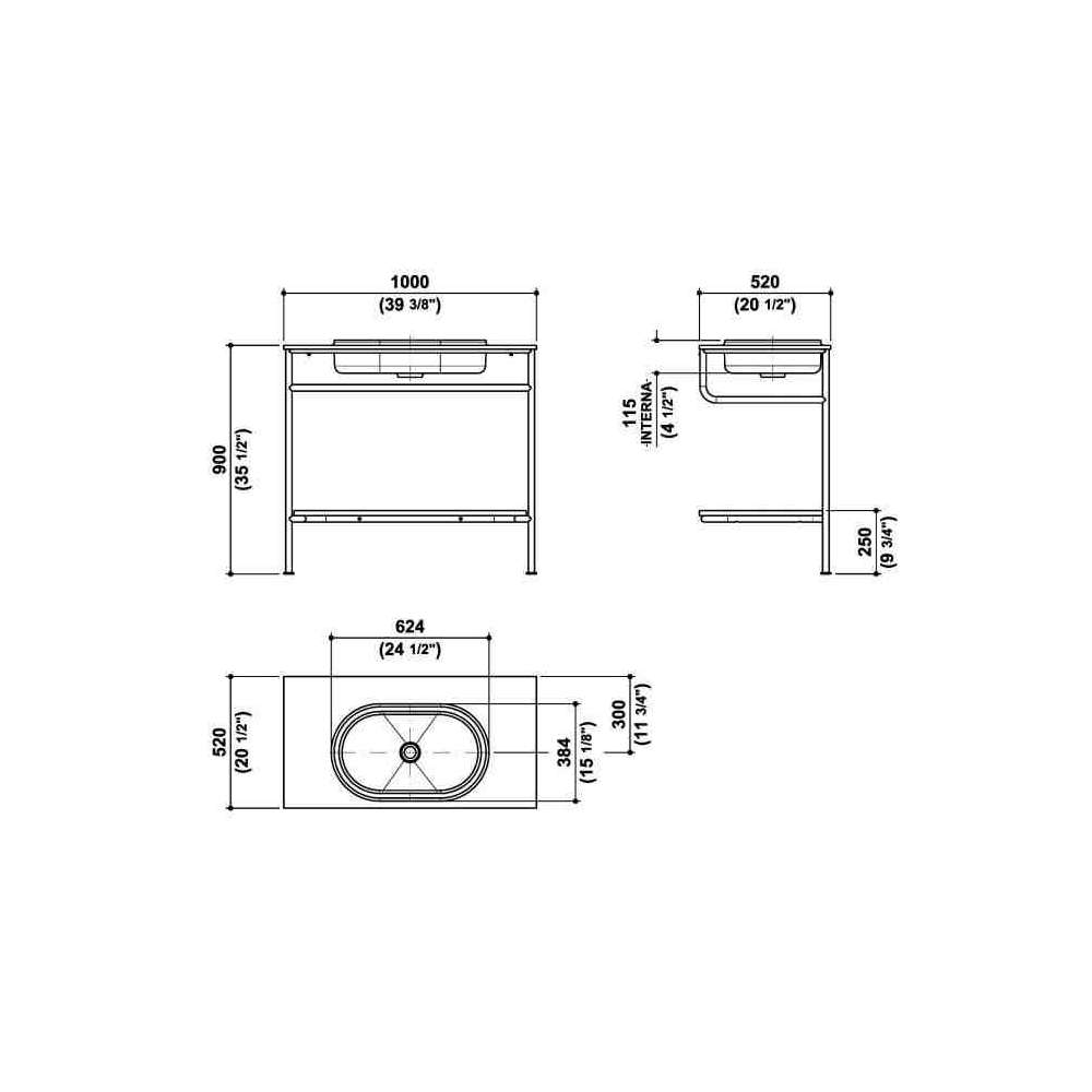 Konsola z wbudowaną owalną umywalką w kolorze Cristalplant®