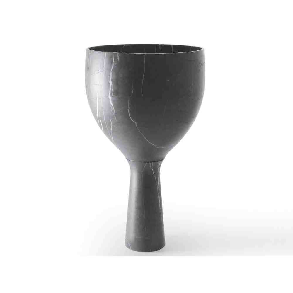 Oba projekty mają stożkową podstawę, z lekką odmianą. Umywalki, wyrzeźbione z litego marmuru, powstają z połączenia dwóch oddzielnych części, aby zapewnić wydajną produkcję i zapewnić stabilność techniczną.