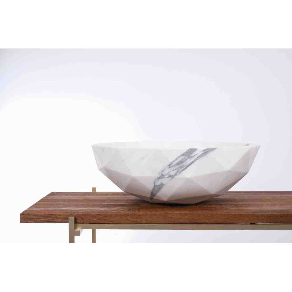 Diamond , projekt Paolo Ulian i Moreno Ratti dla Kreoo, to umywalka charakteryzująca się fragmentacją powierzchni optycznej: wizualna gra geometrii, które przecinają twardą powierzchnię marmuru.