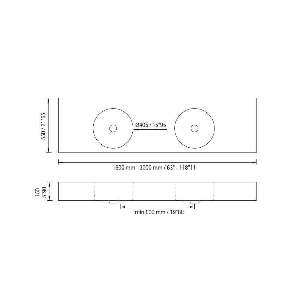 Podwójna okrągła umywalka wisząca Solid Surface MOMA Design CIRCLE SYSTEM