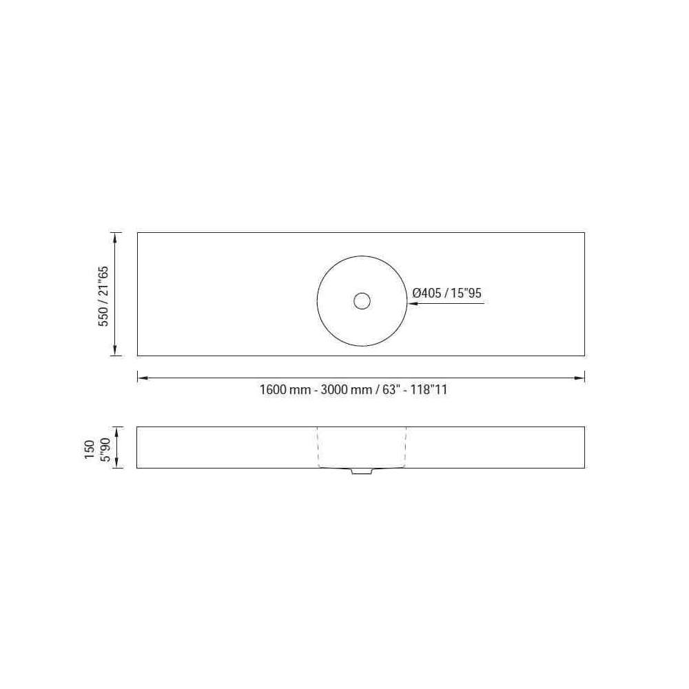 SYSTEM OKRĄGŁY - Prostokątna umywalka ścienna ze zintegrowanym blatem.