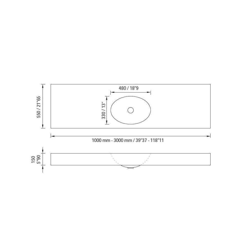 ELY SYSTEM - Prostokątna umywalka ścienna ze zintegrowanym blatem.