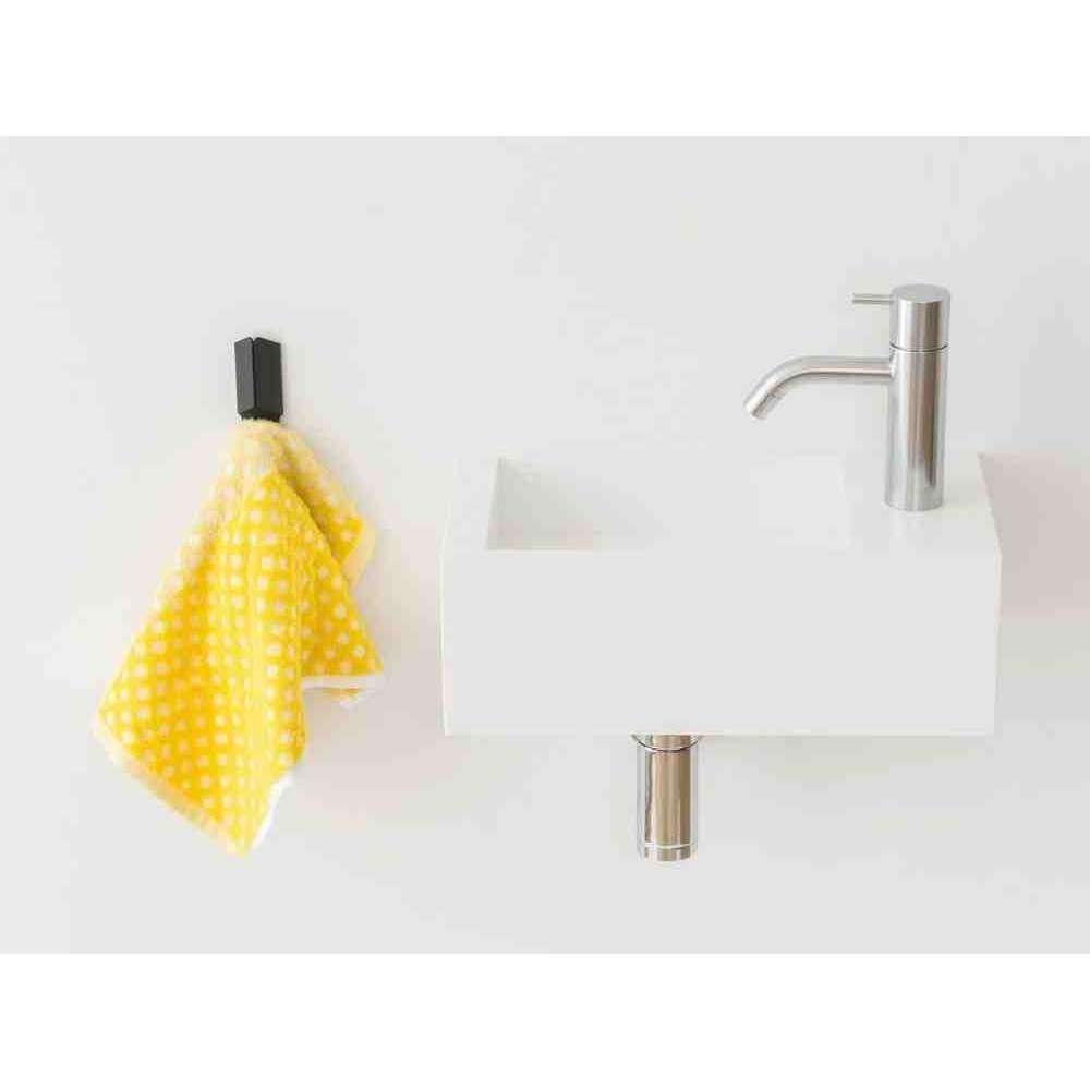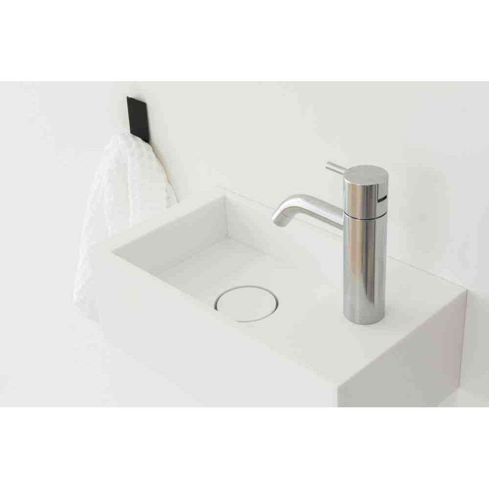 Prostokątna umywalka do montażu na ścianie HI-MACS® z ręcznym spłukiwaniem