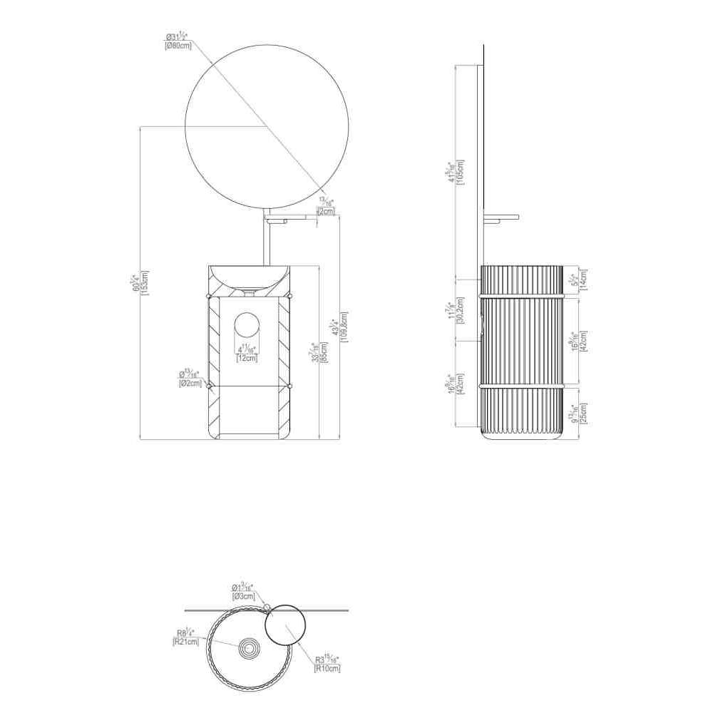Umywalka wolnostojąca okrągła z kamienia naturalnego Porcelanosa Column