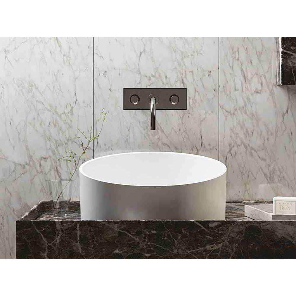 Estro to umywalka nablatowa Solid Surface, której kształt pochodzi z pozaosiowego przetłoczenia obwodu: powstała w ten sposób bryła to rzeźba, która wyraża silną dynamikę i tożsamość, charakterystyczne cechy współczesnej architektury.