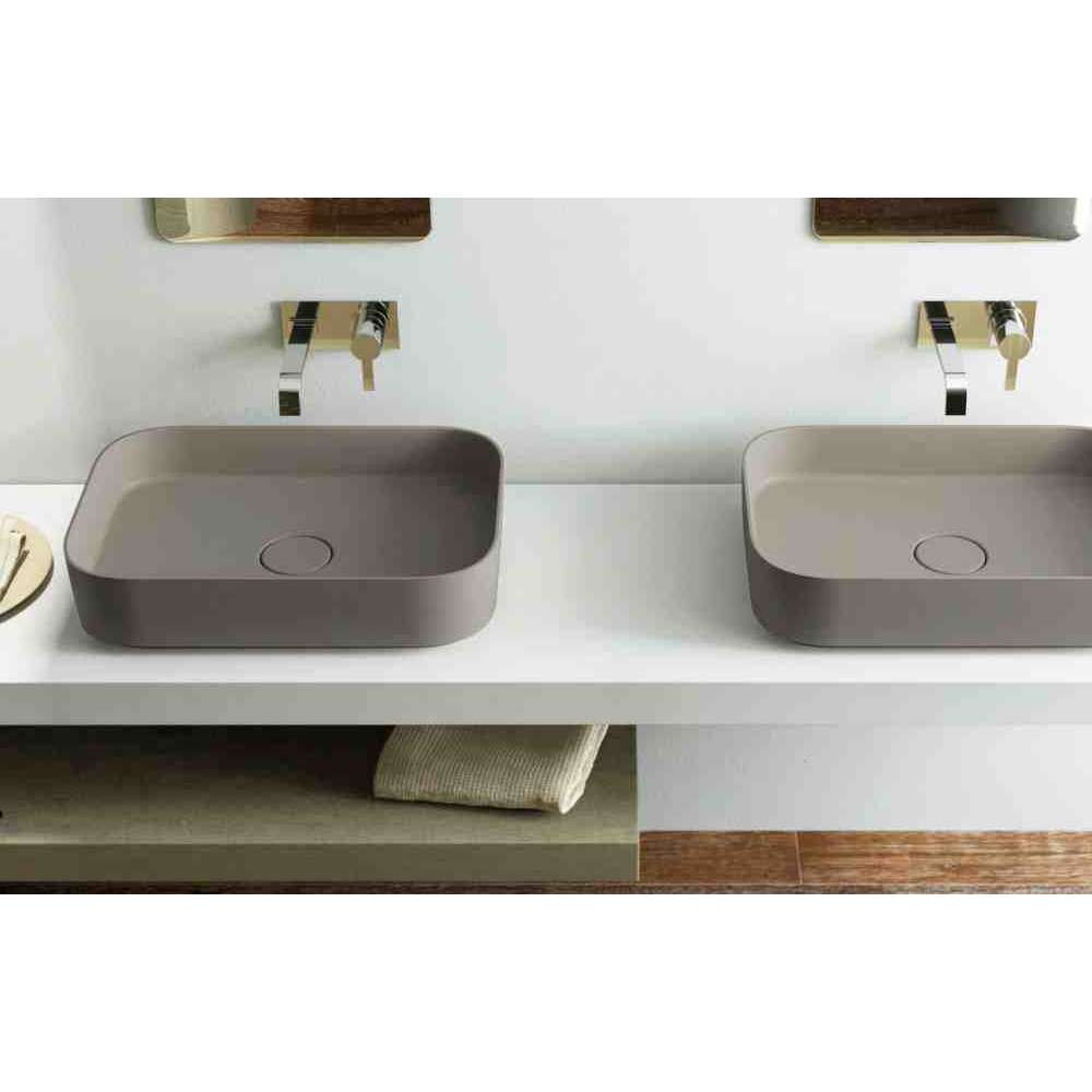 Linfa 2 to umywalka nablatowa z materiału Luxolid® charakteryzująca się miękkimi i rozkloszowanymi liniami. Duża pojemność i całkowity brak ostrych krawędzi sprawiają, że jest to arcydzieło klasycznej elegancji: jest idealną umywalką do wyrafinowanych łazienek, gdzie dążenie do maksymalnej higieny idzie w parze ze stylem i luksusem.