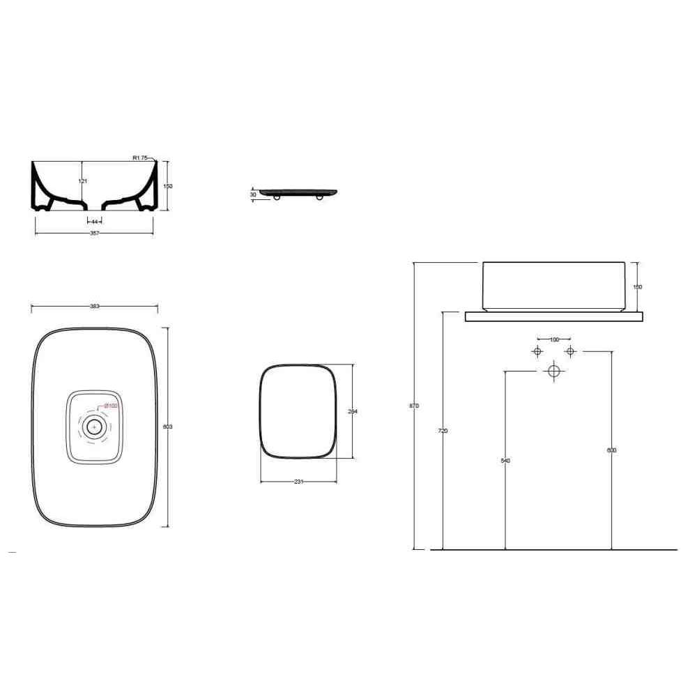 Acquerello to prostokątna umywalka ceramiczna bez przelewu. Paleta pokryw na odpady.