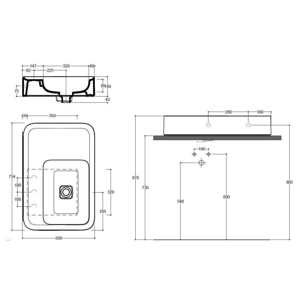 Umywalka ceramiczna nablatowa i wisząca z przelewem Valdama Cameo