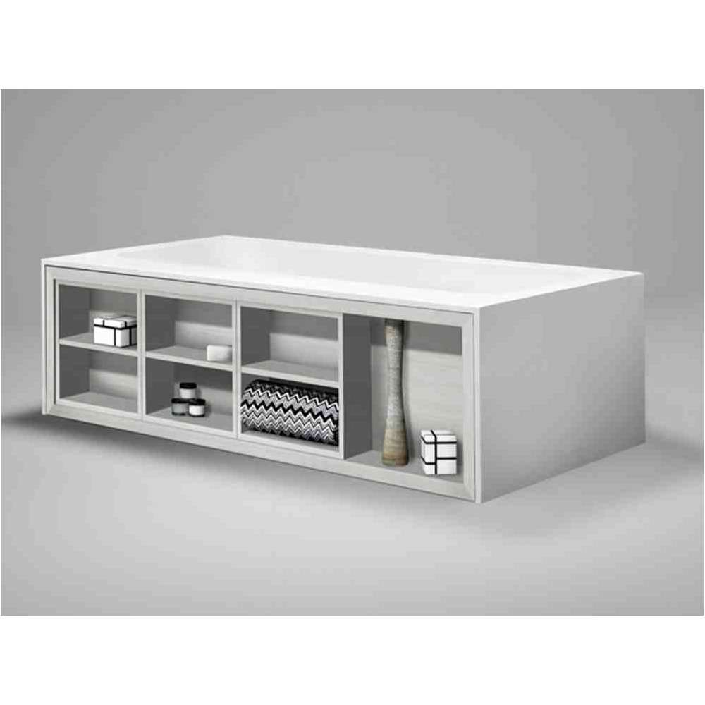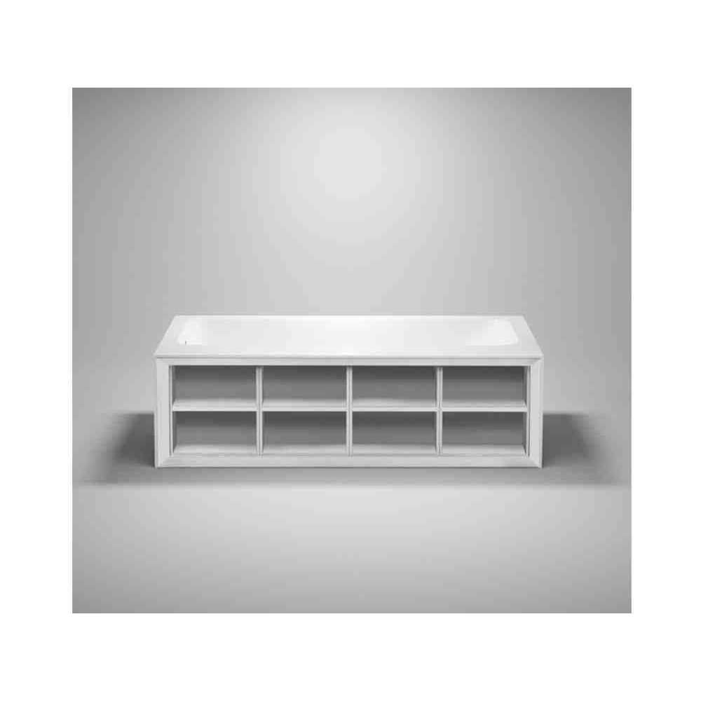 Głęboko mocząca wanna o długości 6 stóp wykonana jest z ekologicznego kamienia blu∙stone™, charakterystycznego dla Blu Bathworks®. Wodoszczelne regały nie zawierające lotnych związków organicznych są dostępne w różnych wykończeniach w technologii Hard Surface Technology (HST) lub białym matowym wykończeniu lakierem.