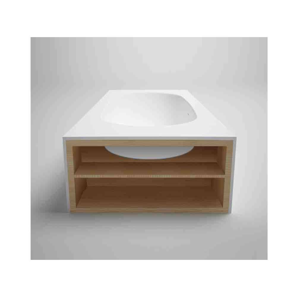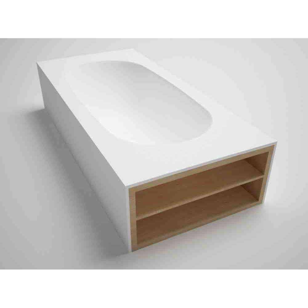 Charakteryzujące się tym samym unikalnym połączeniem pod kątem 45 stopni we wszystkich czterech kątach, półki wpuszczane są wykonane w sposób zrównoważony z materiału pochodzącego z recyklingu o niskiej emisji formaldehydu i są dostępne w dopasowanych wykończeniach z matowego lakieru naturalnego dębu lub białego. Półki dodatkowo poprawiają wrażenia z kąpieli, służąc jako stylowa półka na książki lub wyjątkowy sposób na kreatywne przechowywanie i eksponowanie przyborów toaletowych.
