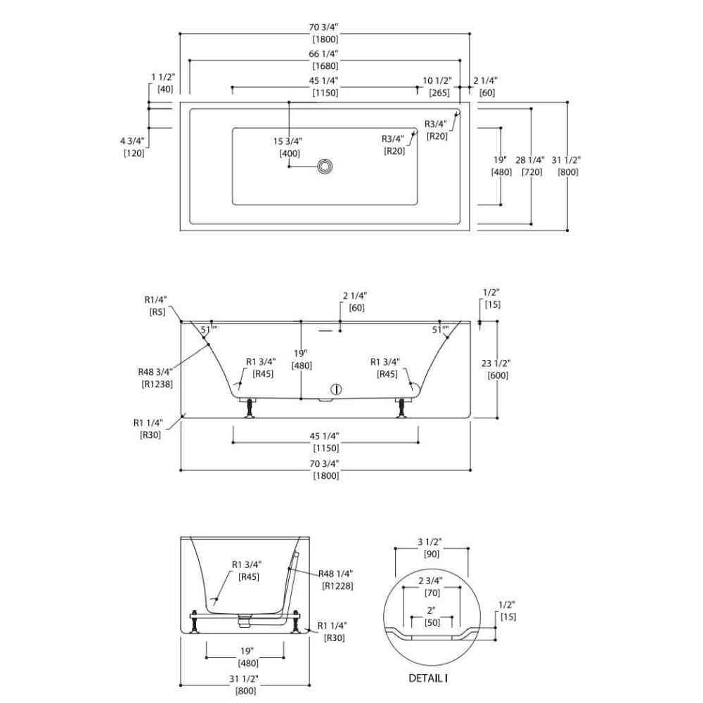 - wanna akrylowa wolnostojąca jednoczęściowa z wbudowanym przelewem szczelinowym;