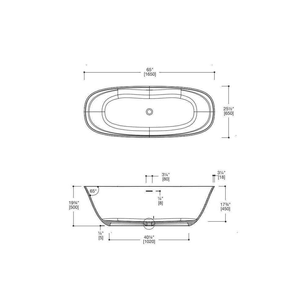 luna·1 cienka wanna z zanurzeniem ma wymiary 65" x 25½" z niskim stopniem wysokości 19¾", dzięki czemu jest wygodna do codziennego brania prysznica / kąpieli.